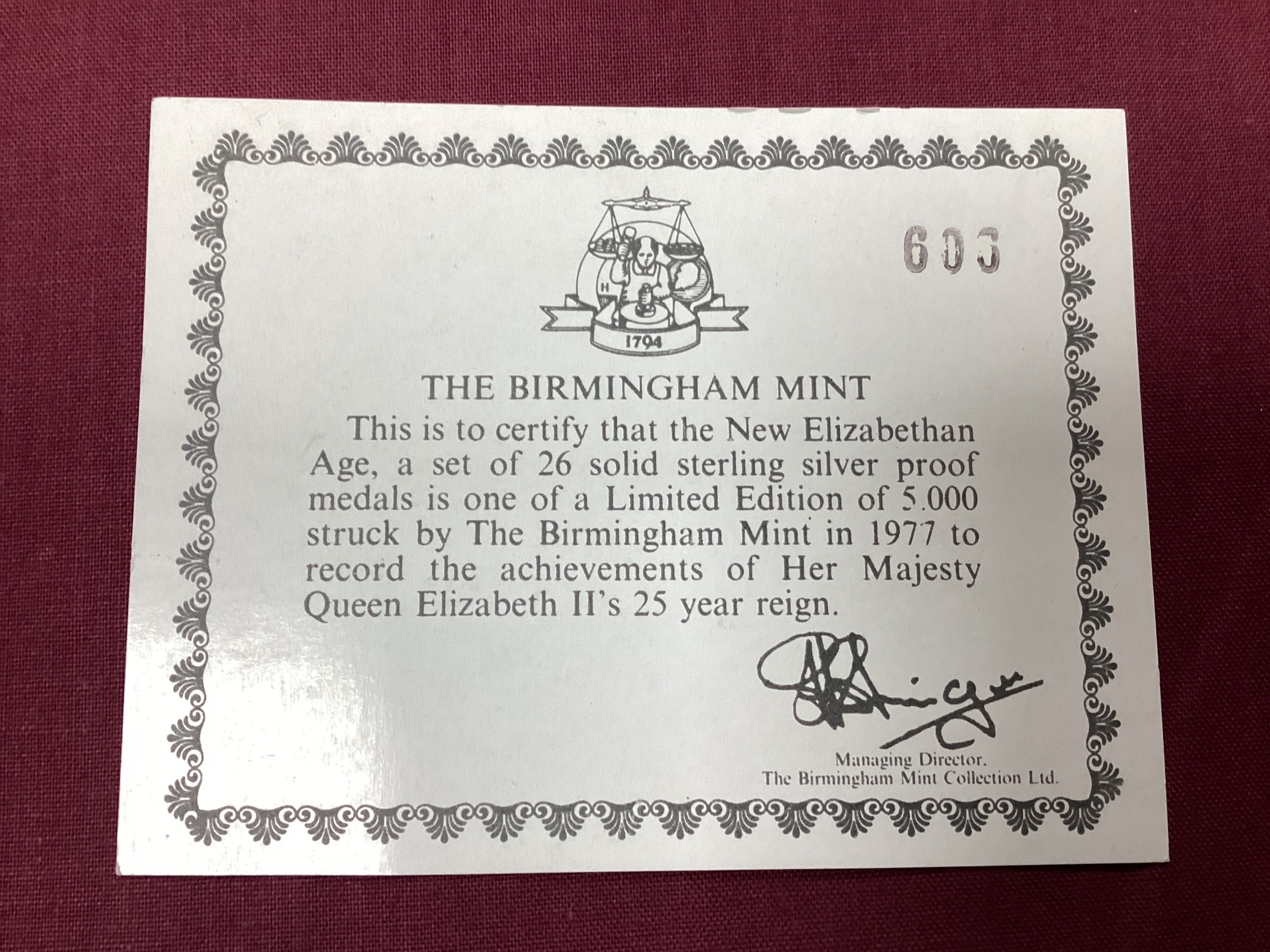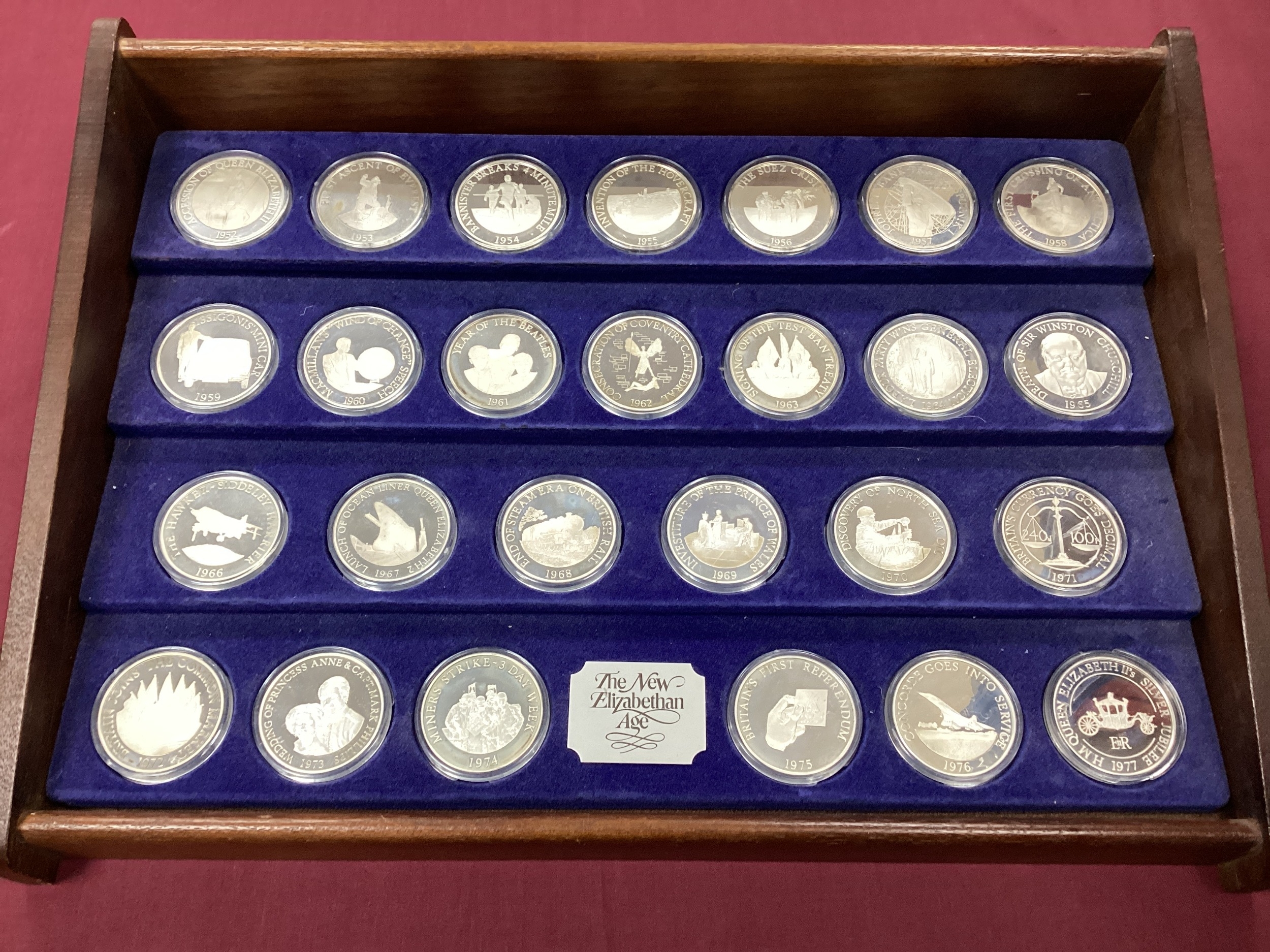 The Birmingham Mint 1977 New Elizabethan Age Sterling Silver Twenty Six Medal Collection, ina wooden fitted case, with a certificate of authenticity, total weight 1170g.