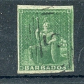 BARBADOS 1855 - 58 ½d green 4 margined vfu. SG 8. Cat £150.