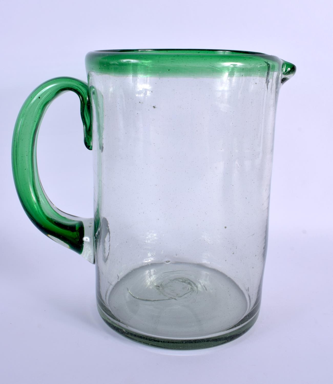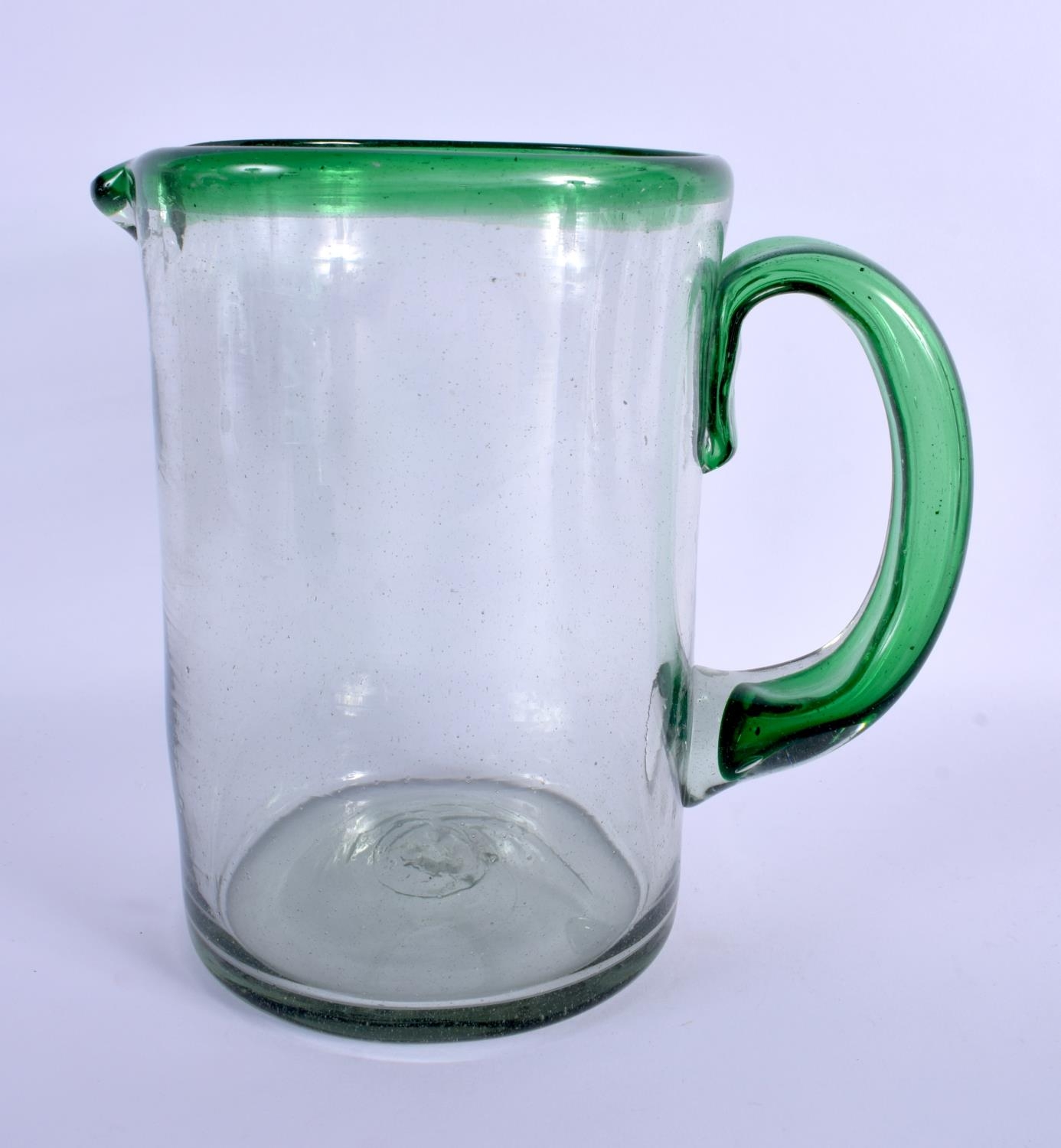 A LARGE ART GLASS JUG. 23 cm x 15 cm.