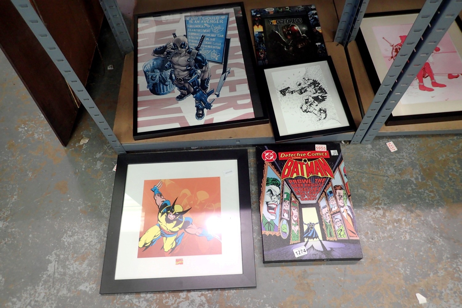 Five comic related prints. Not available for in-house P&P