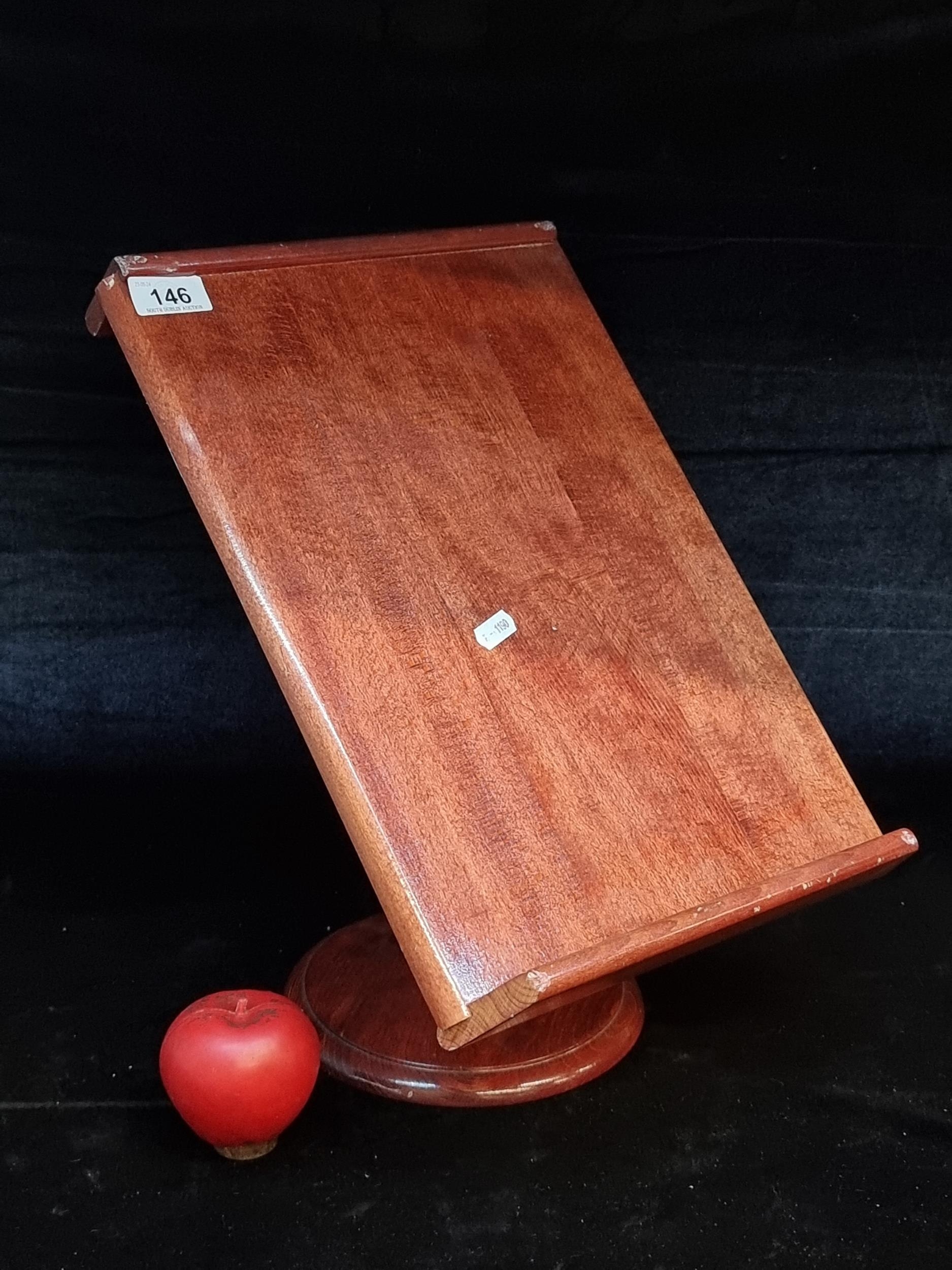 A wooden table top lectern stand. Would work for a cookbook or a tablet.