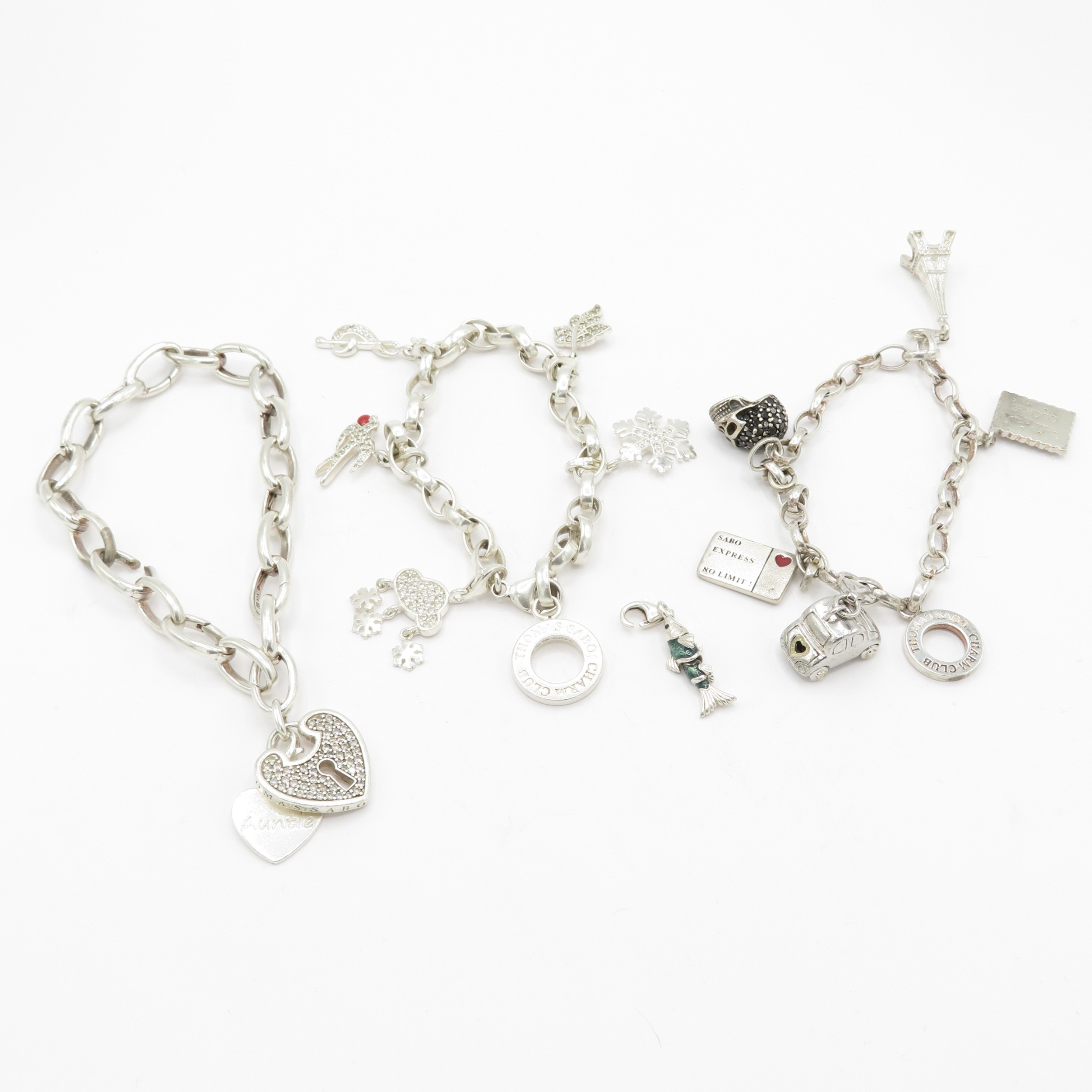 3 x Sterling Silver Thomas Sabo Bracelets inc Skull, Fish and Snowflake - 79.6g