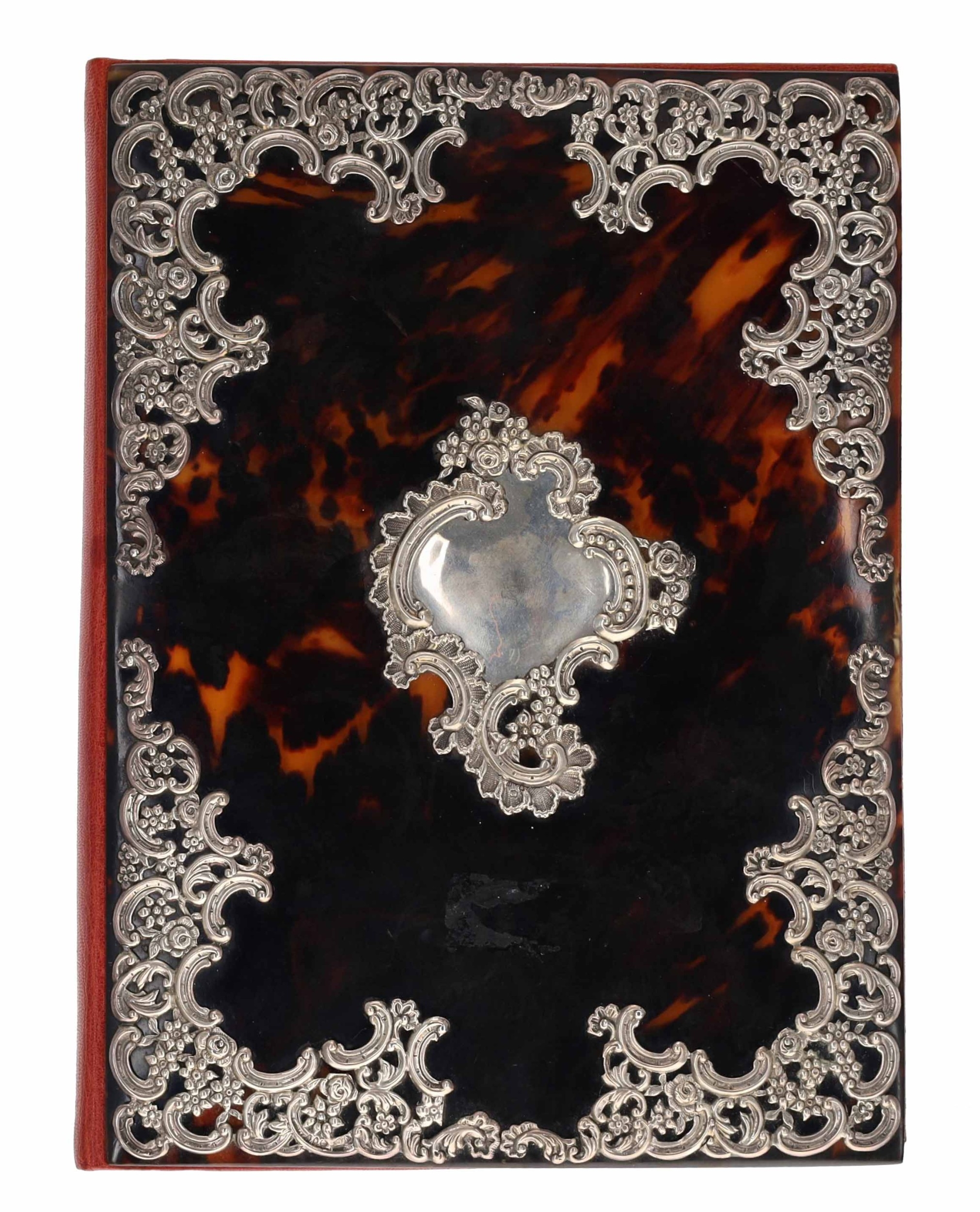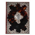 Good silver mounted tortoiseshell ink blotter, the applied silver scroll mounts and cartouche by William Comyns & Sons, London 1895, 9" x 12"