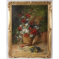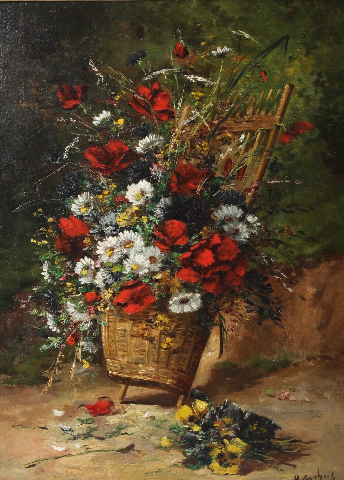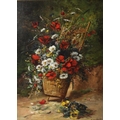 HENRI CAUCHOIS (1850-1911) Still life of daisies and poppies in a basket oil on canvas signed 72 x 53cm