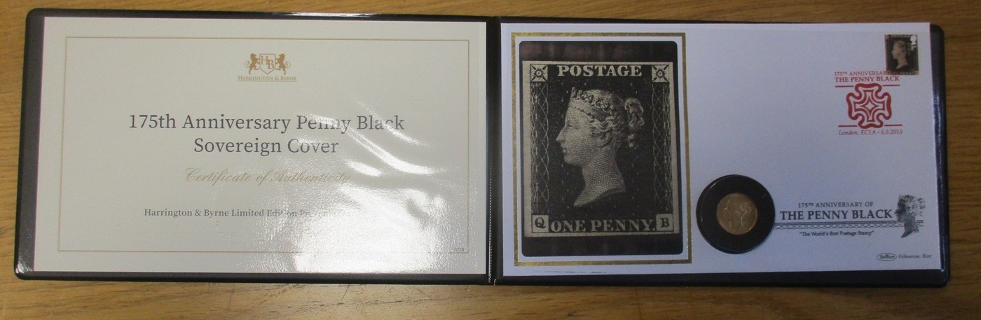 Investment Gold lot - documents required. 2015 '175th Anniversary of the Penny Black' cover with 1874 sovereign very fine inset. (R)
