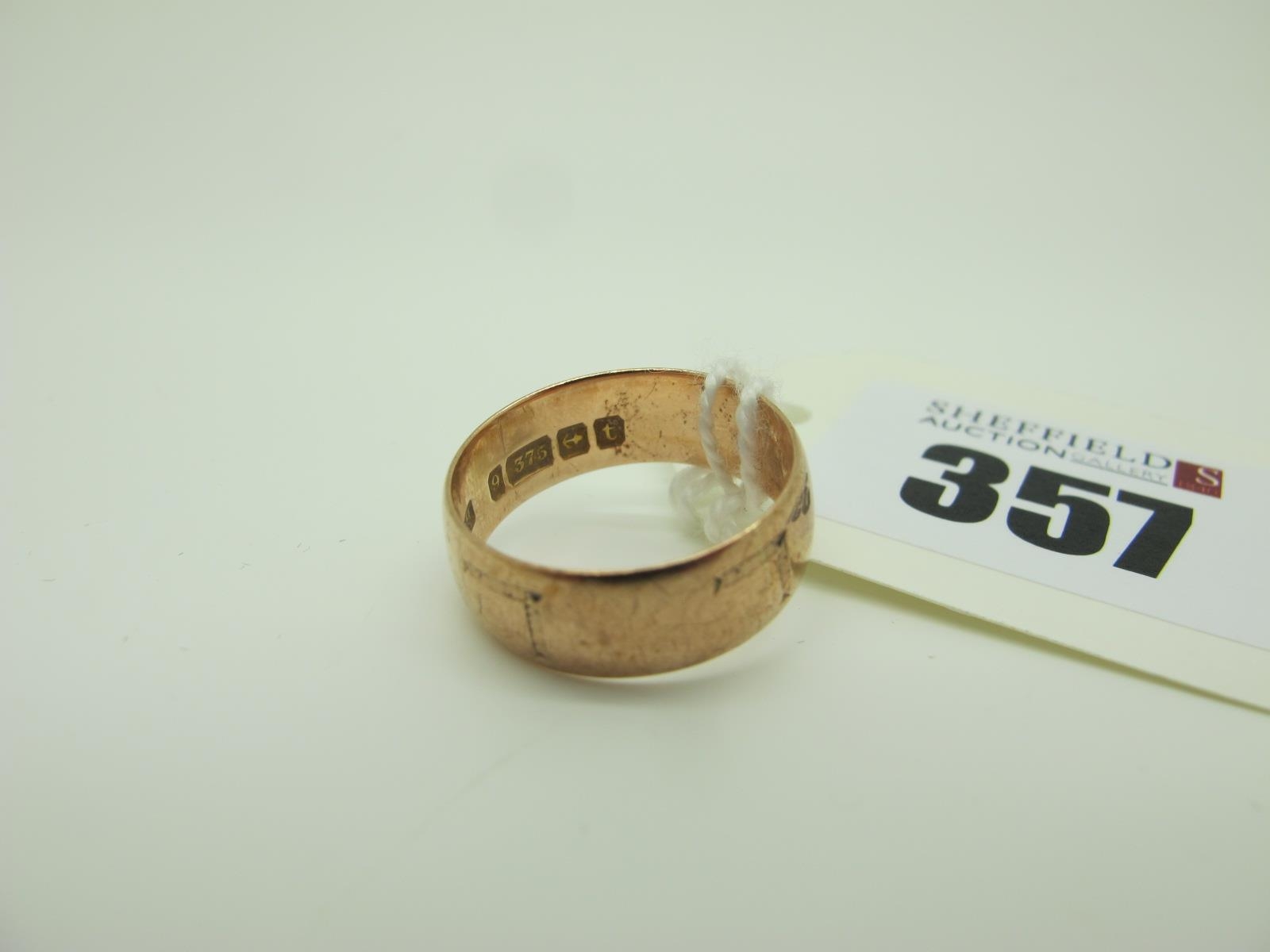 A Wide 9ct Gold Wedding Band, initialled (finger size M/N) (3grams).