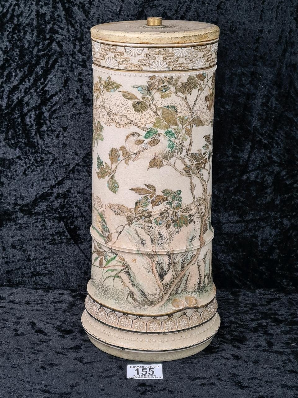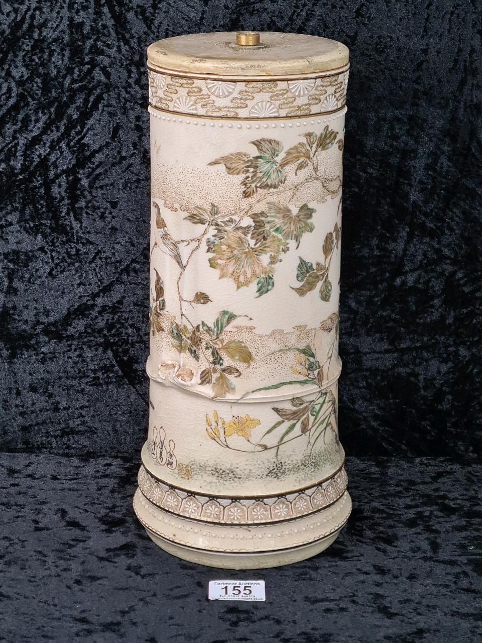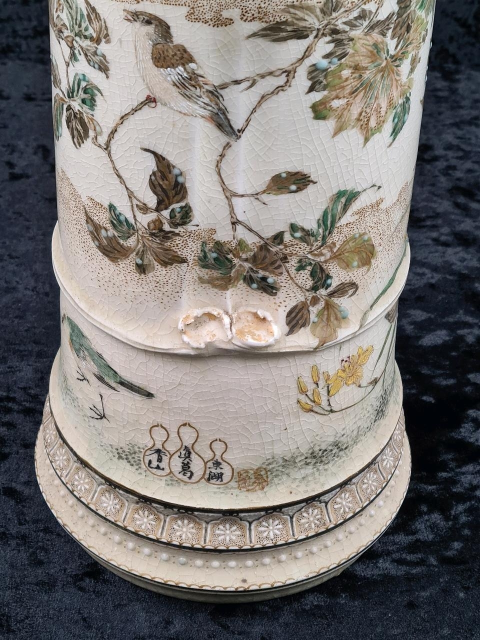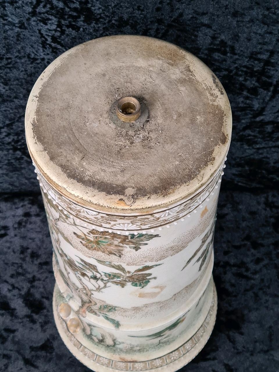 Old Satsuma ware ceramic item - could be a lamp stand - has interesting finger marks/grooves on each side. Approx H36cm.