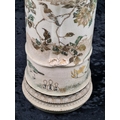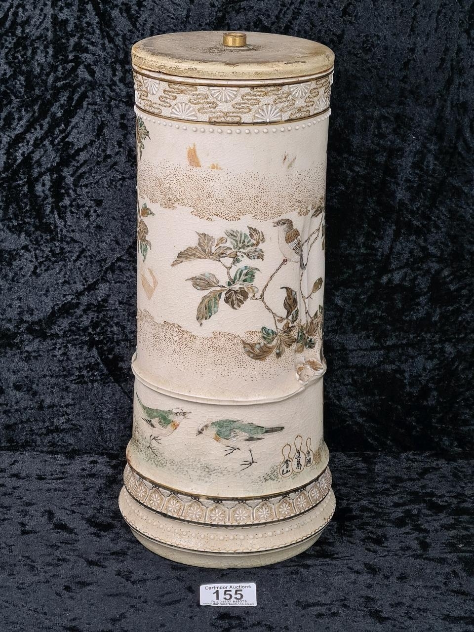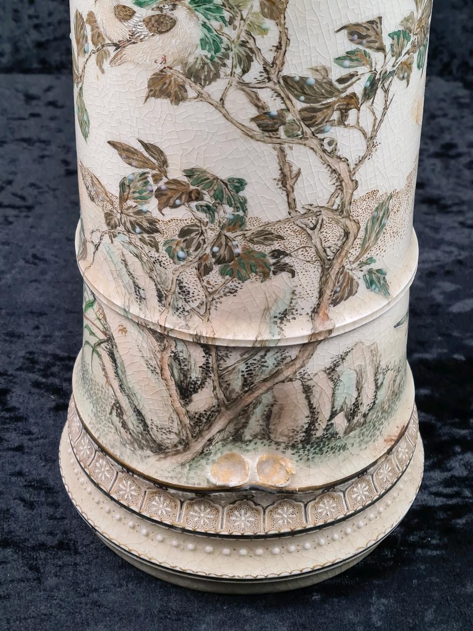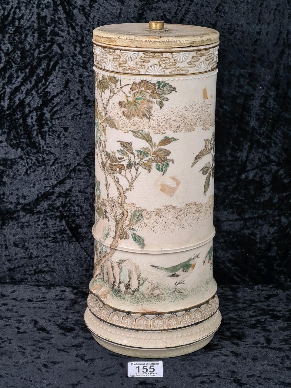 Old Satsuma ware ceramic item - could be a lamp stand - has interesting finger marks/grooves on each side. Approx H36cm.