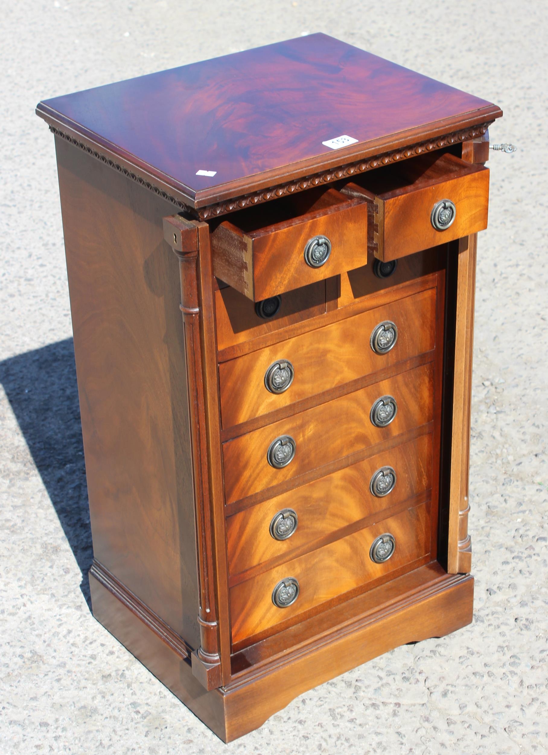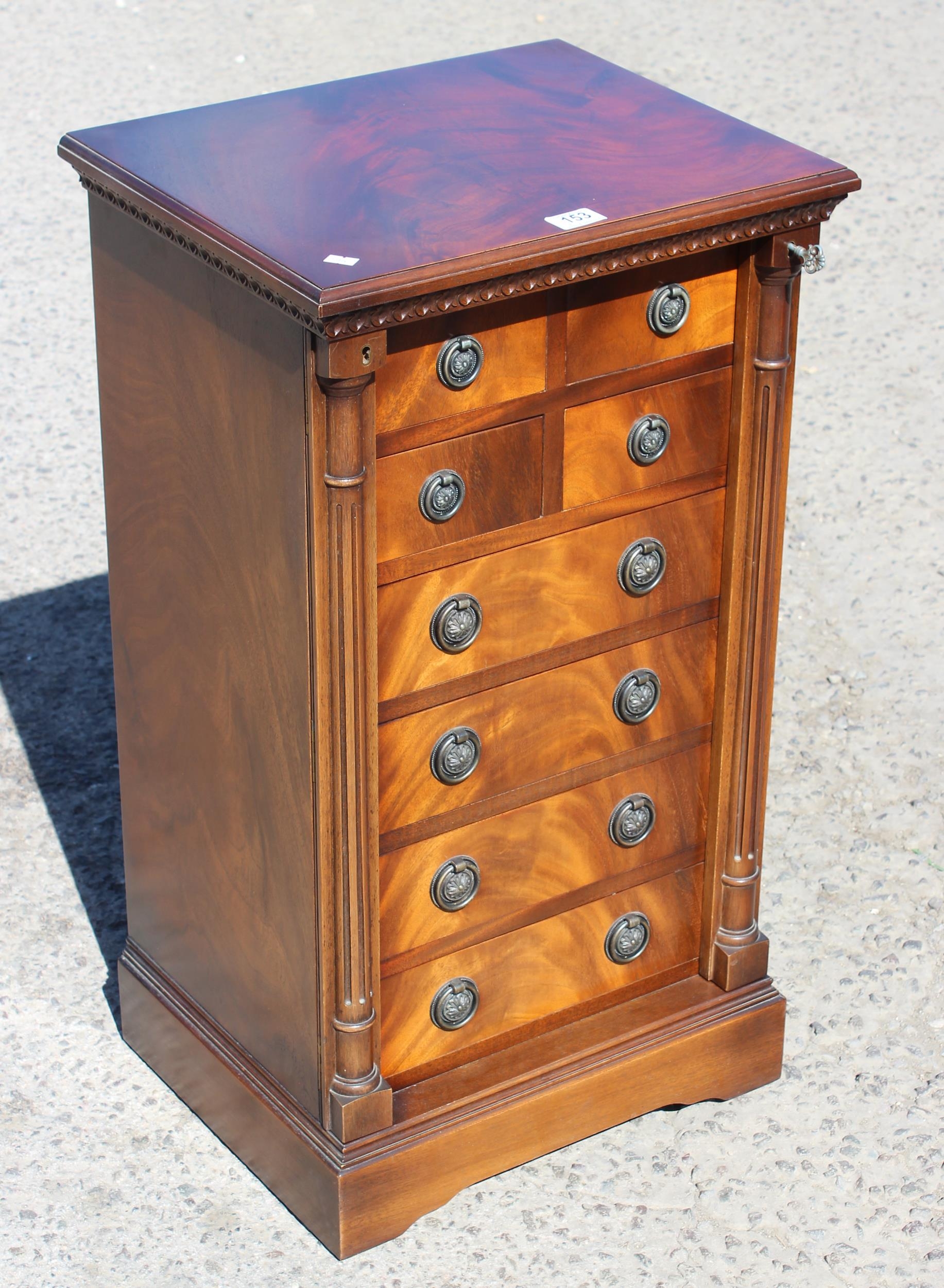 A reproduction eight drawer Wellington chest with key