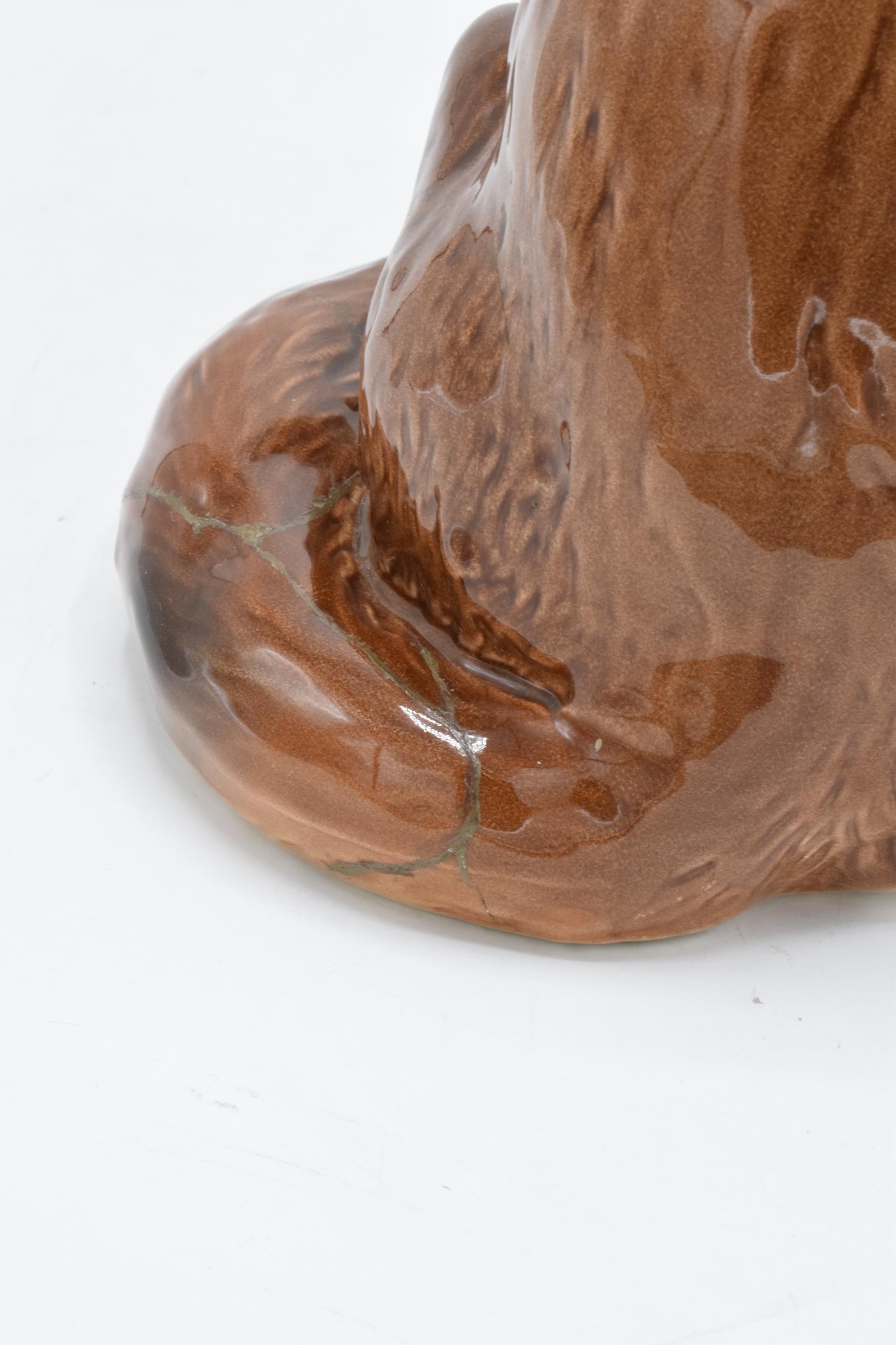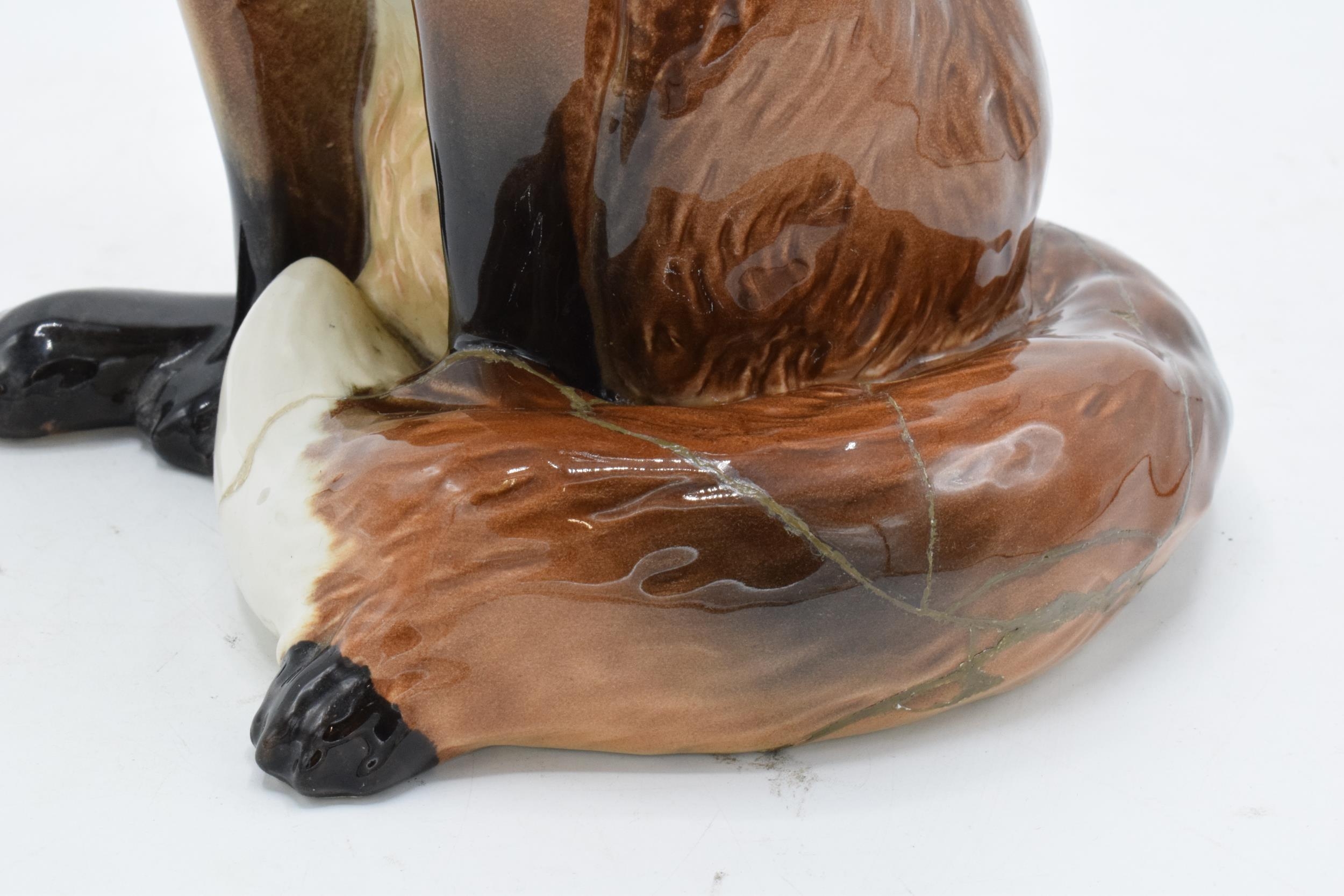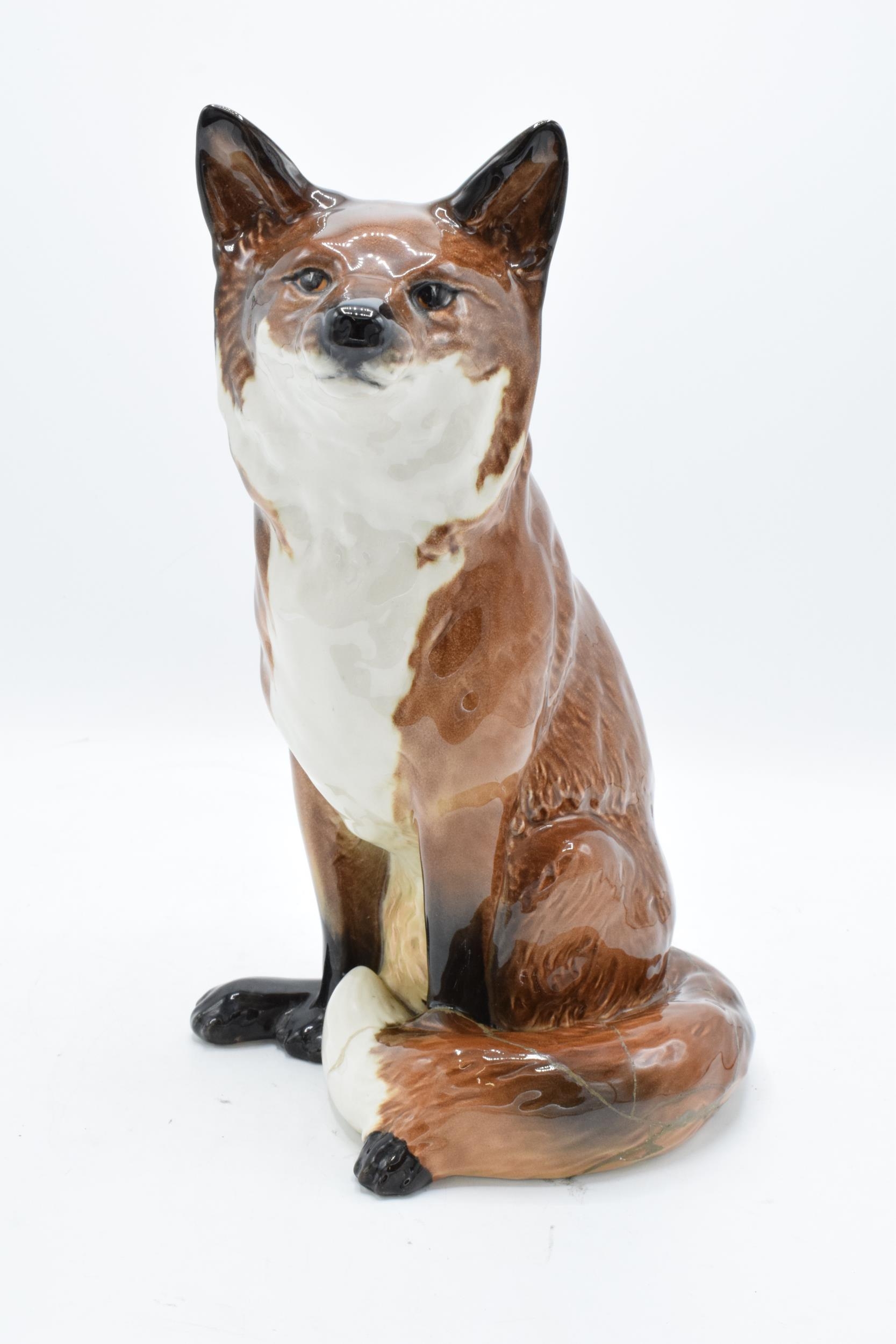 Beswick Fireside Fox 2348. The top half and body of the piece is in good condition however the base has been broken and glued together in several places. 31cm tall.
