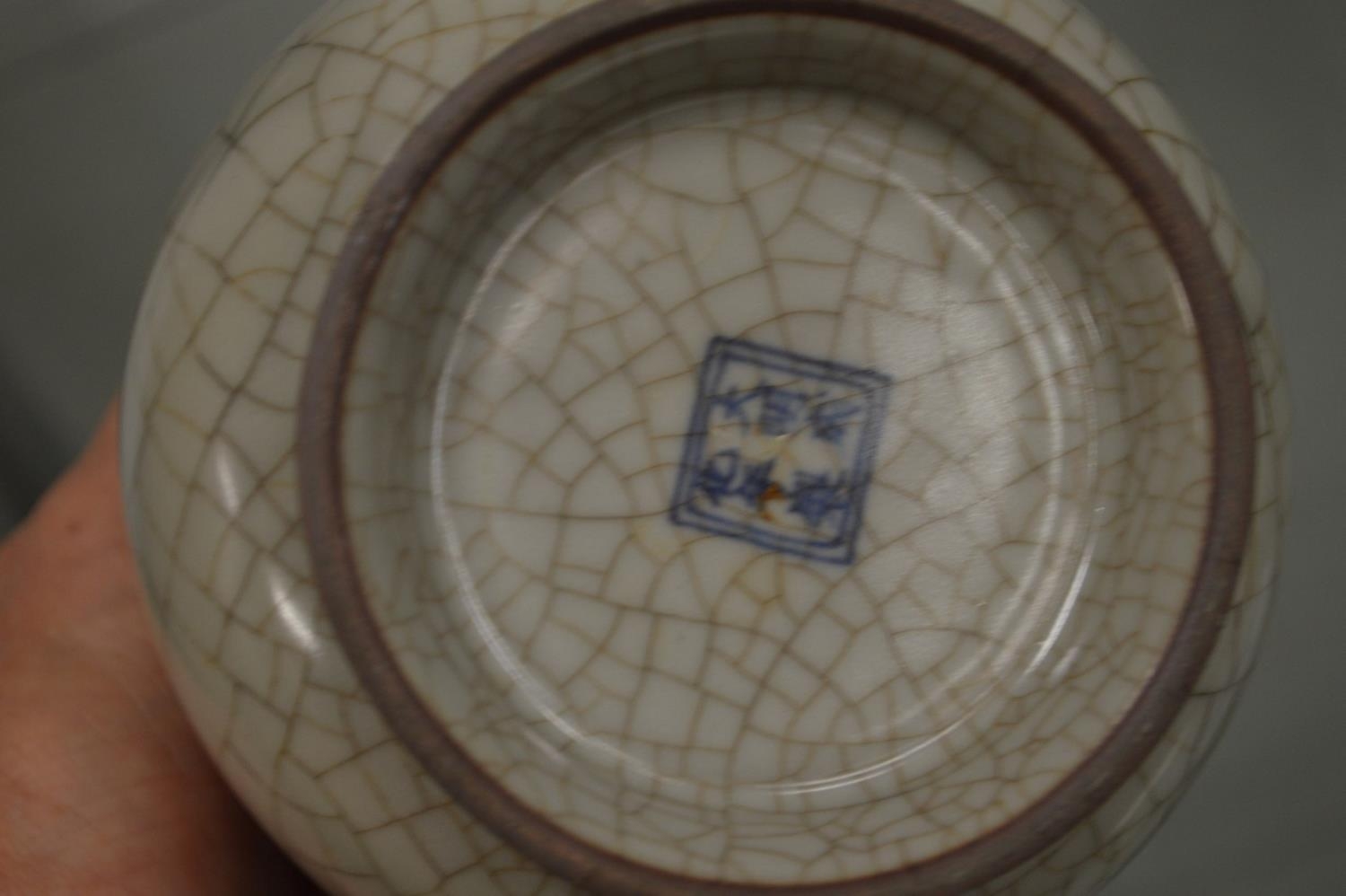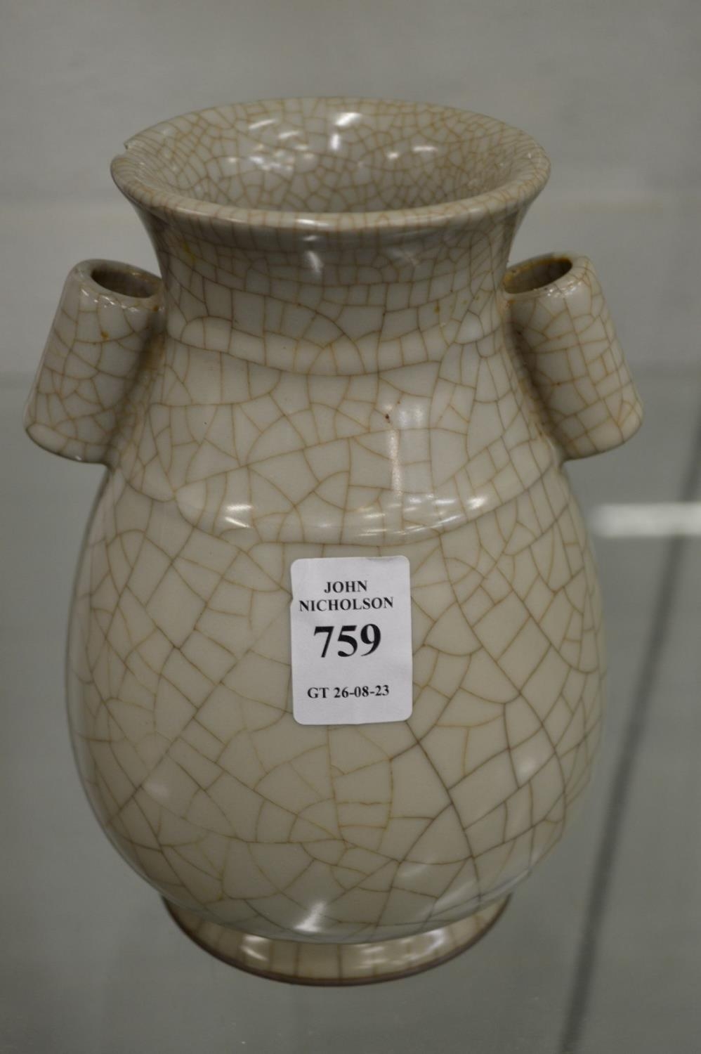 A Chinese crackle glazed twin handled vase.