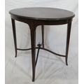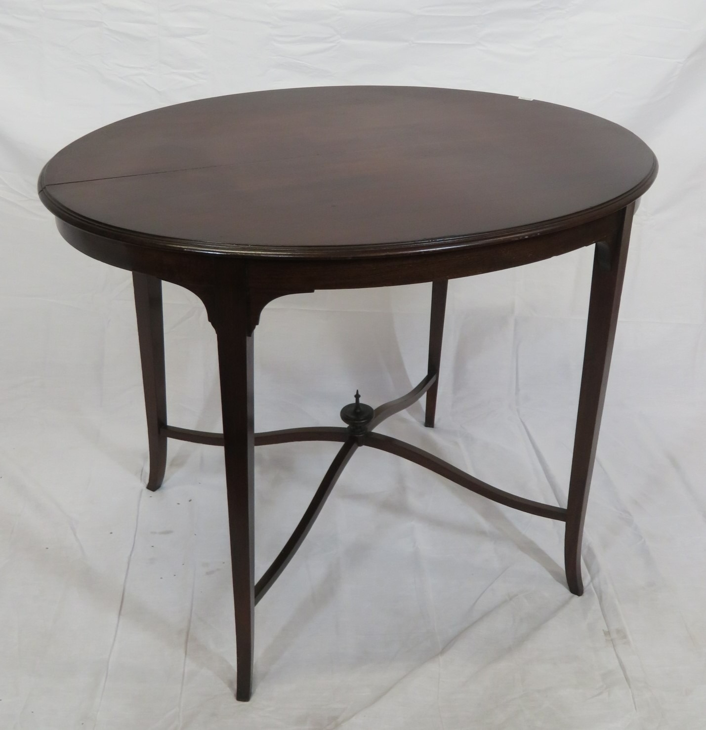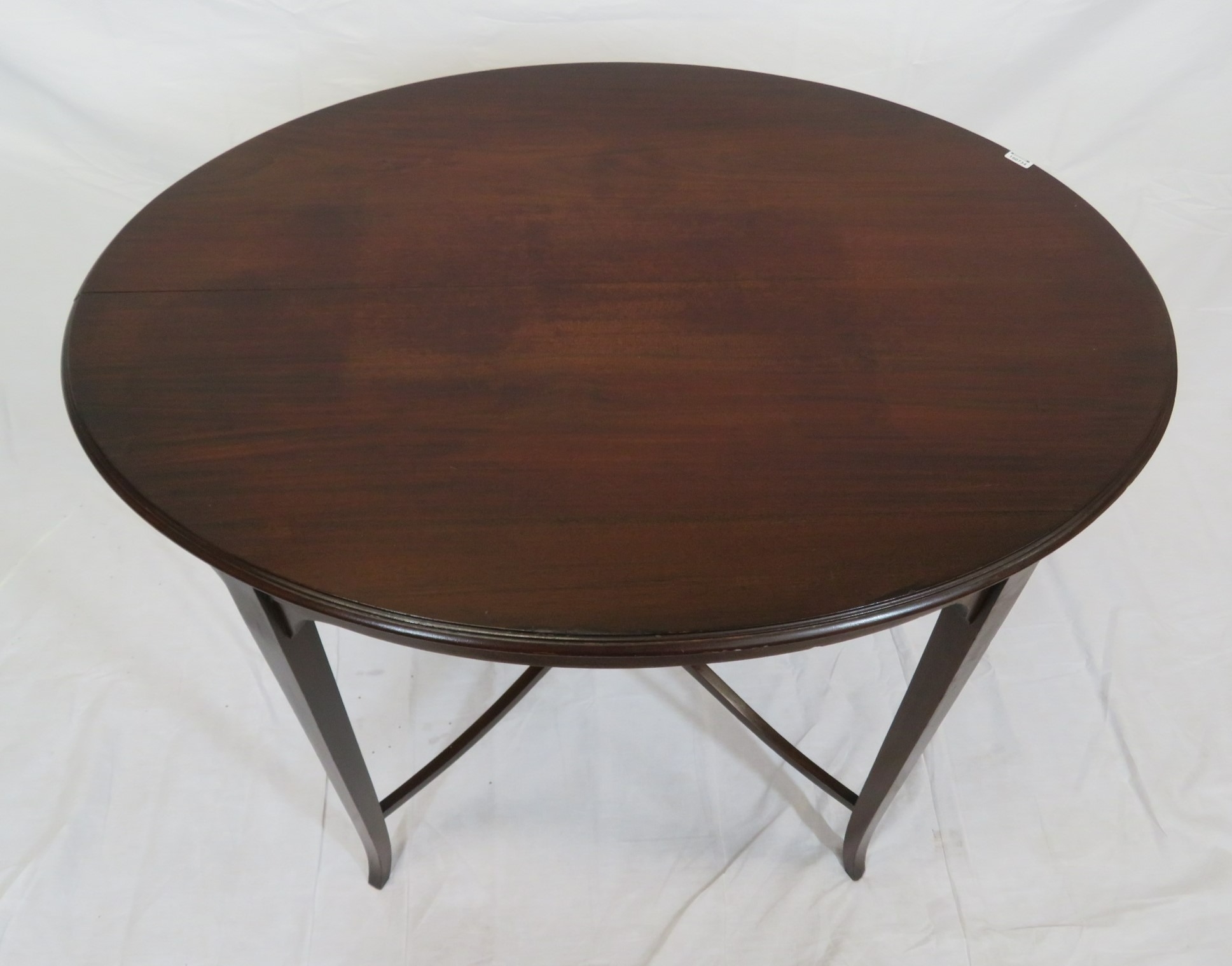 Edwardian oval mahogany occasional table with shaped tapering legs & stretchers