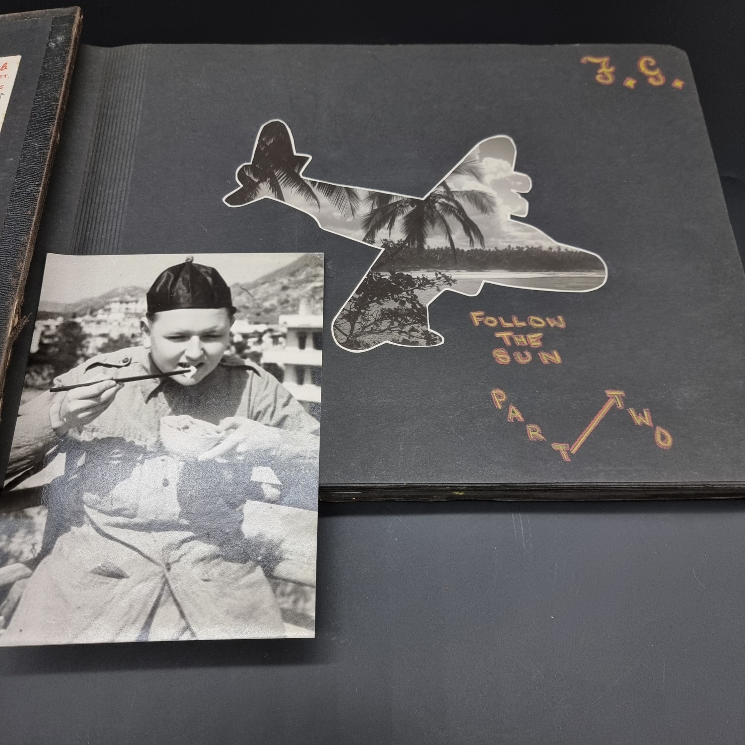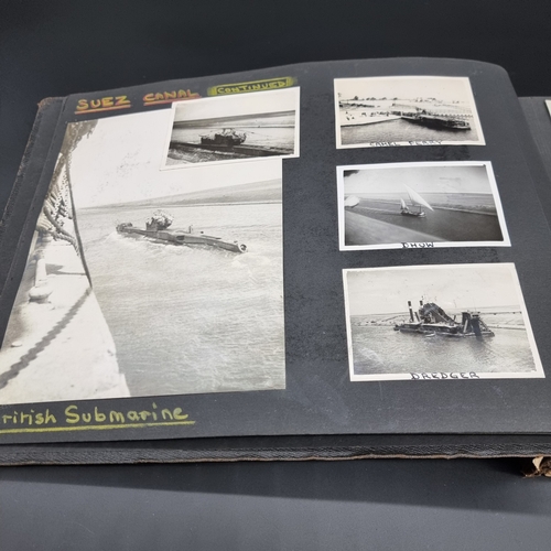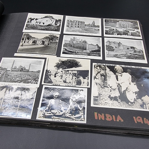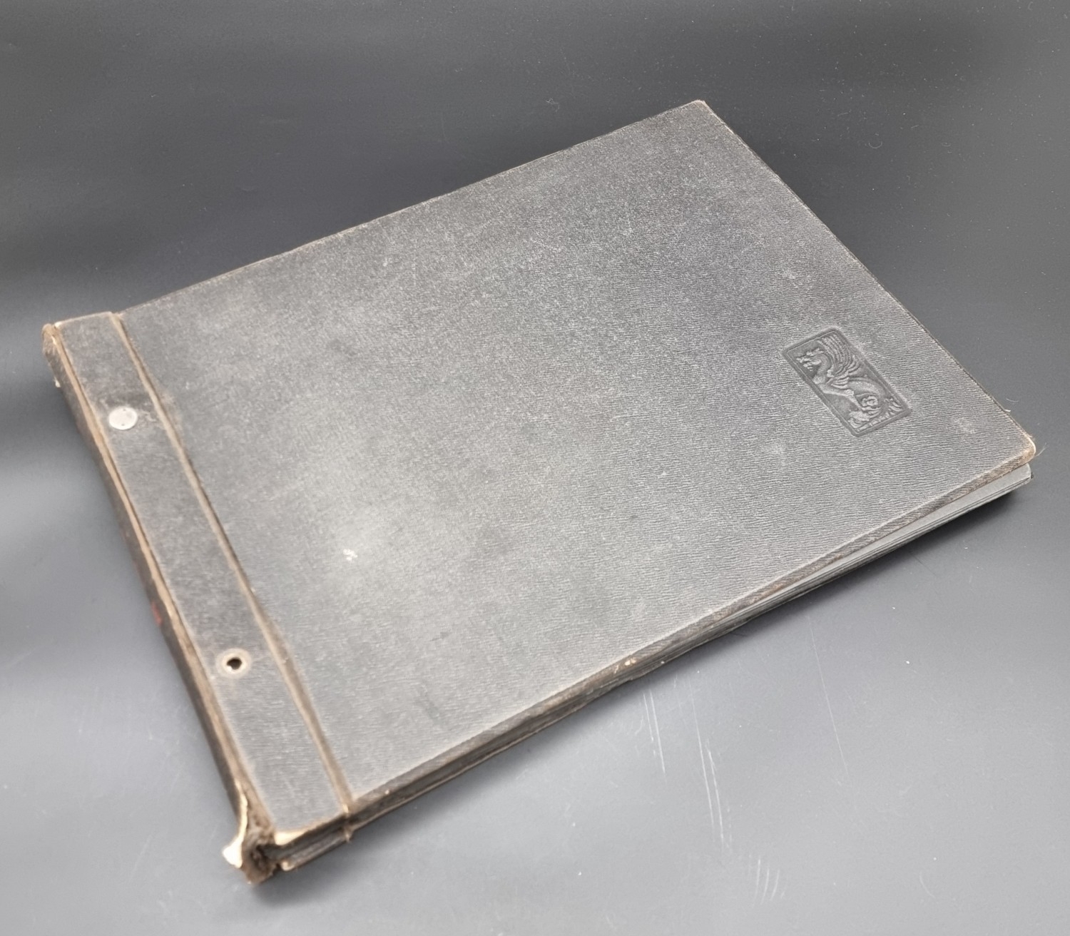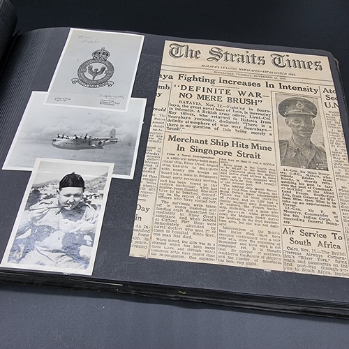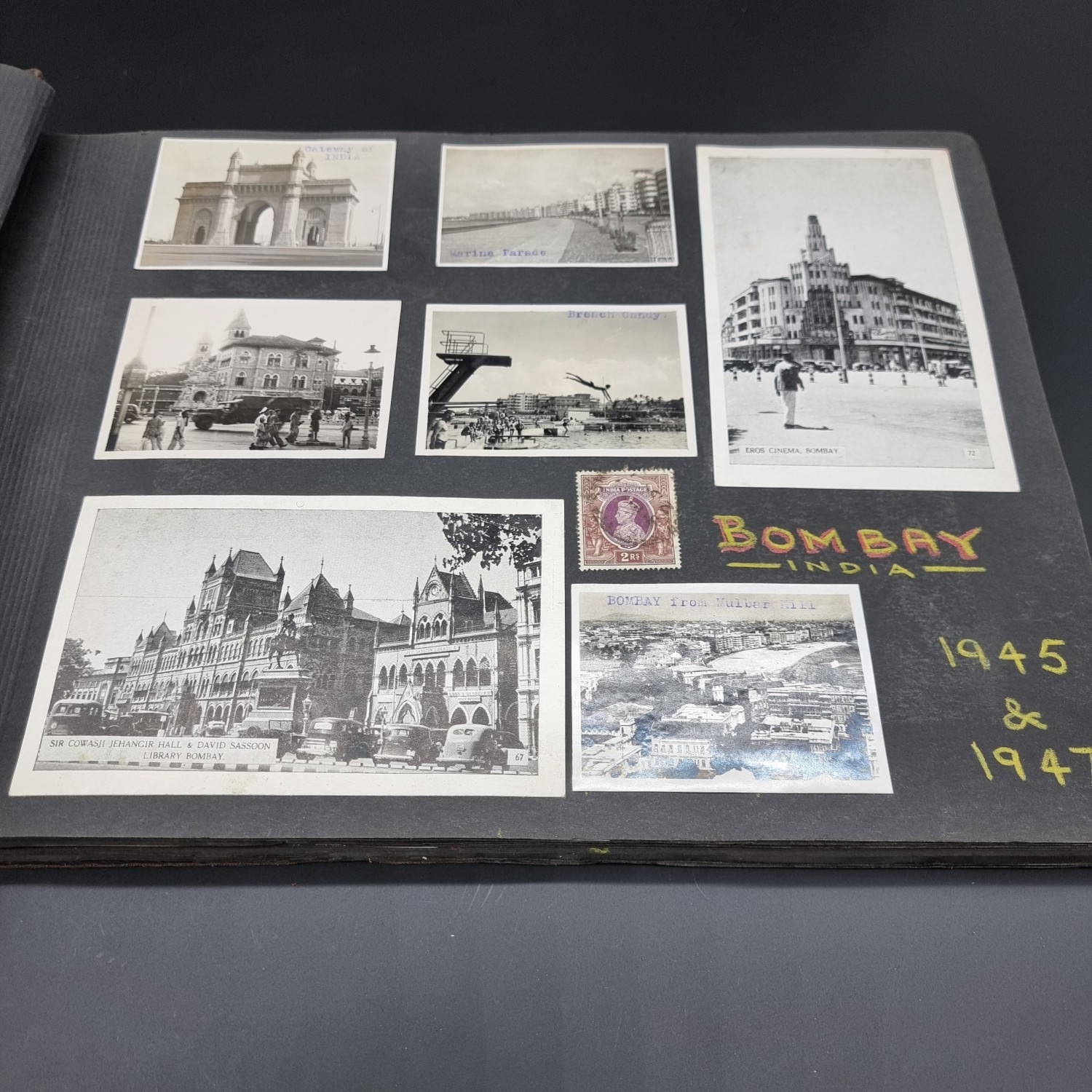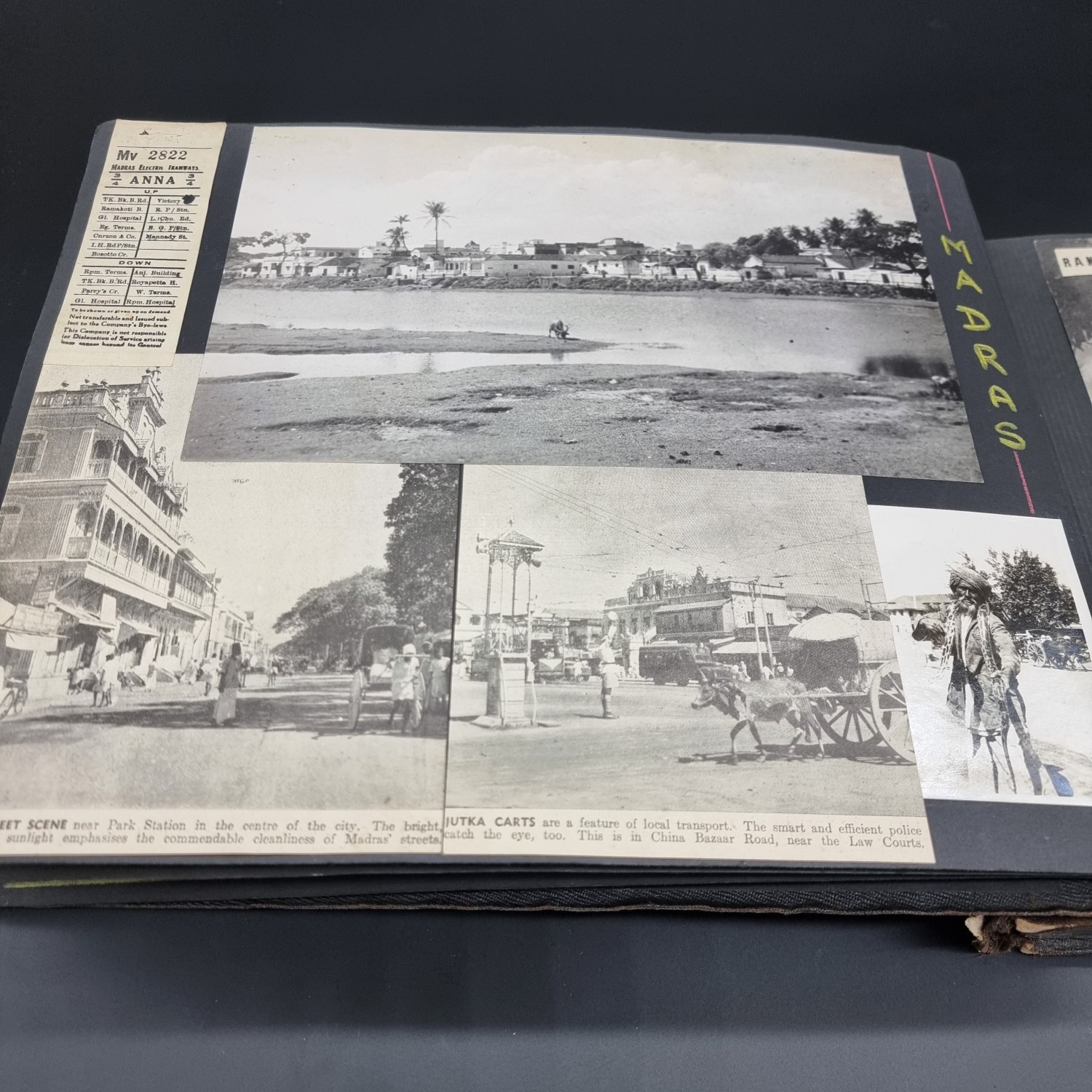PHOTOGRAPH ALBUM: Hong Kong, Kowloon and Singapore, 1946, images recording the period just after the Japanese occupation: approx 180 b&w photographs of various sizes, some original and others commercial, numerous street scenes including Wanghai market, Queen Street and residences of Aw-Boon-Haw and Aw-Boon-Par, Chinese millionaires: some related tickets, stamps, banknotes and cuttings tipped-in: contained in black buckram album of period, oblong 4to. (1)
