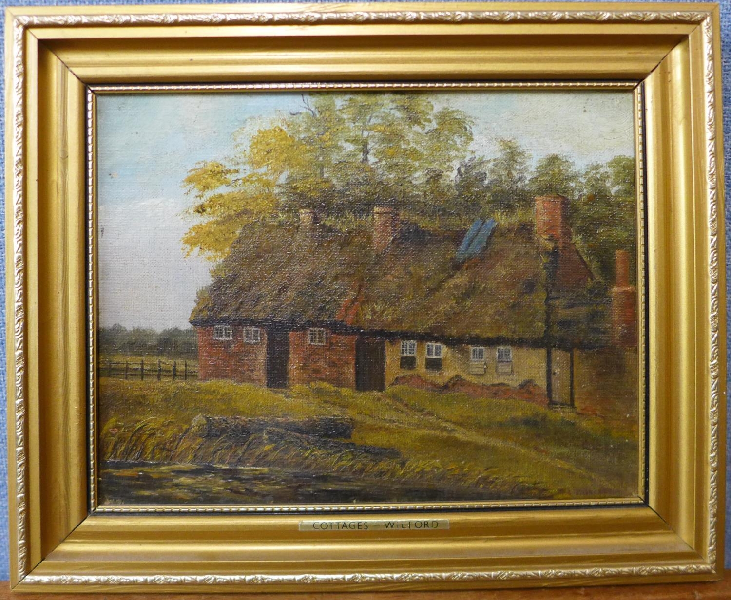 English School, Cottages - Wilford, oil on board, 17 x 22cms, framed