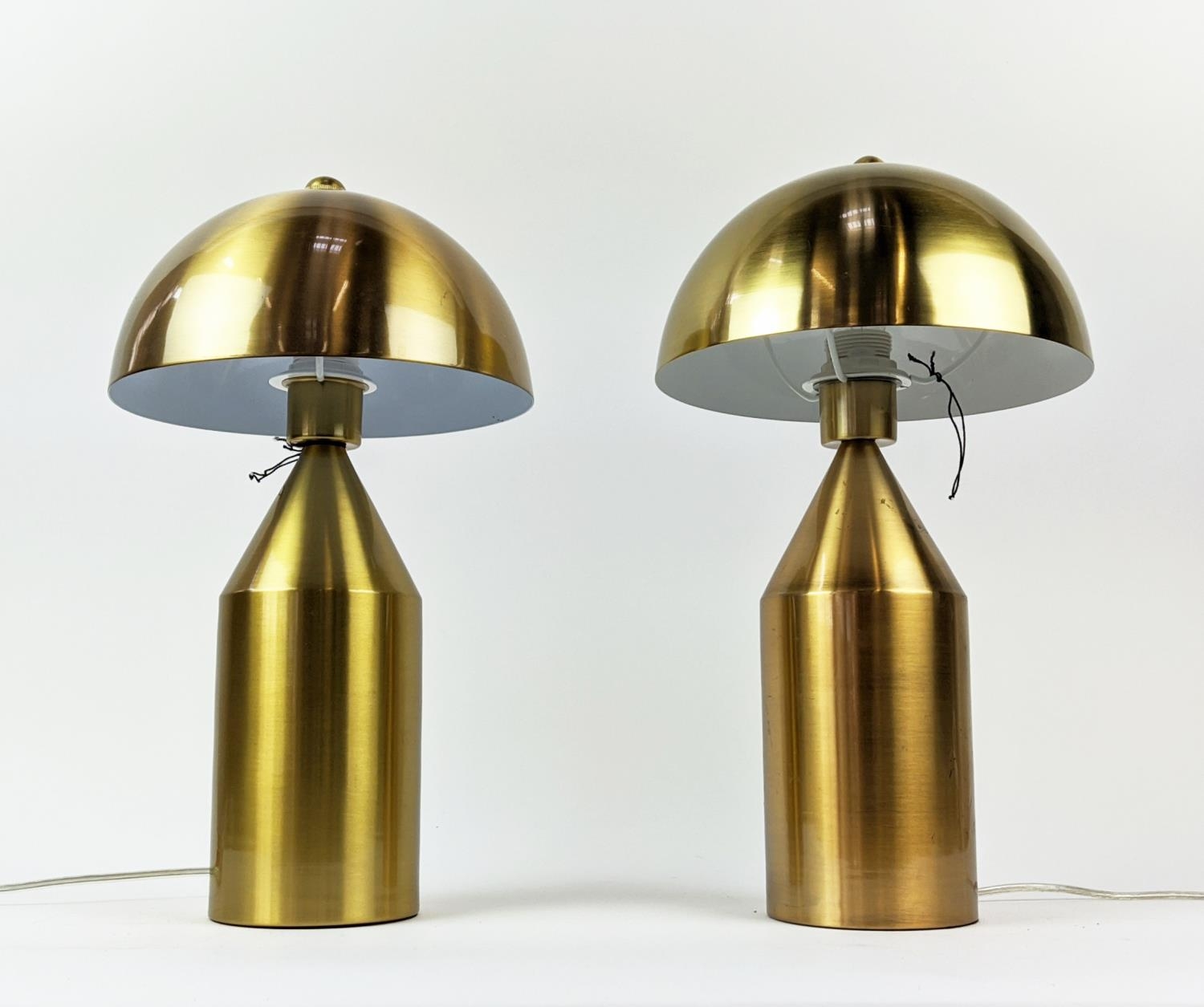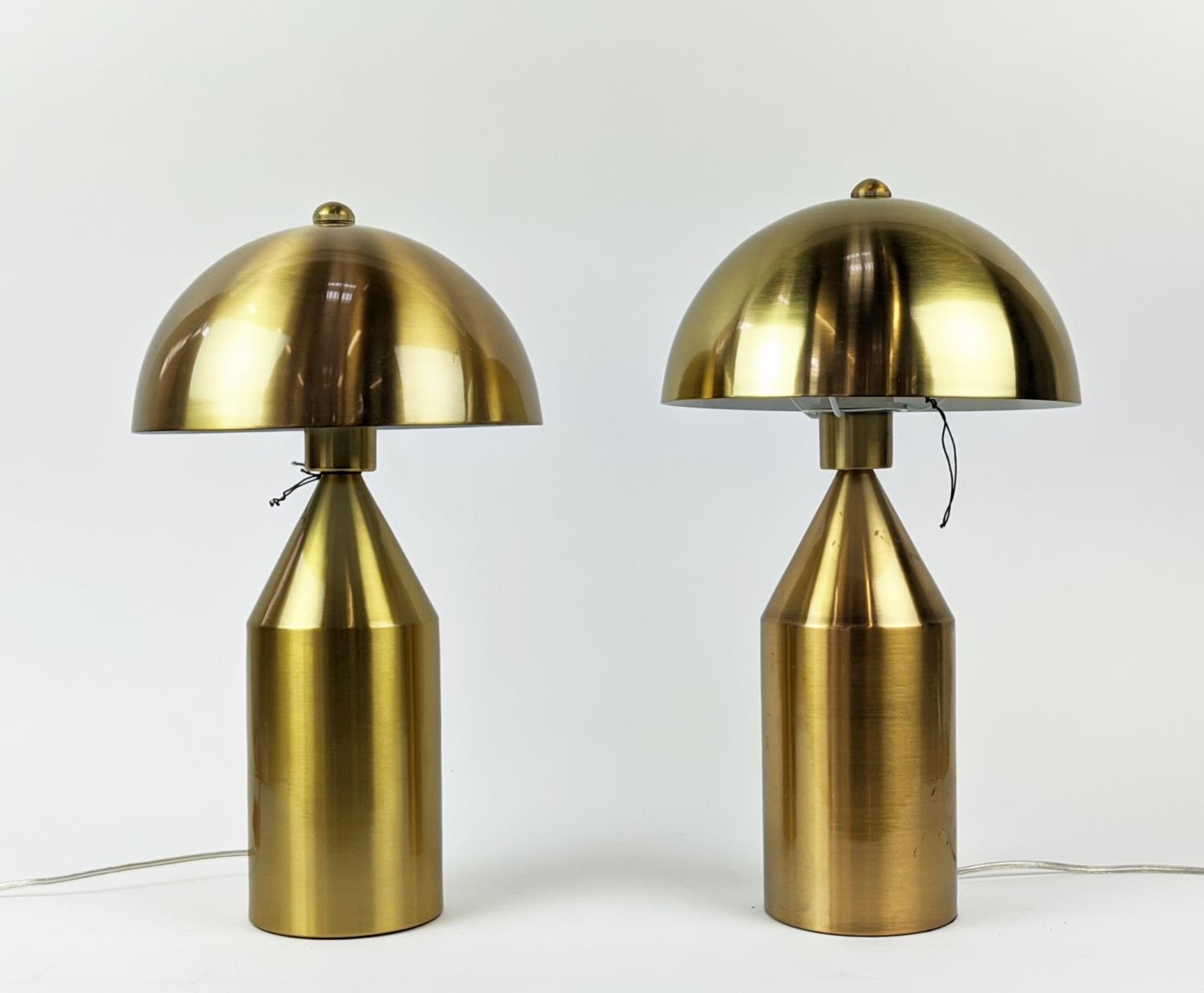VICO MAGISTRETTI STYLE TABLE LAMPS, a pair, gilt metal, 44cm H approx. (2)