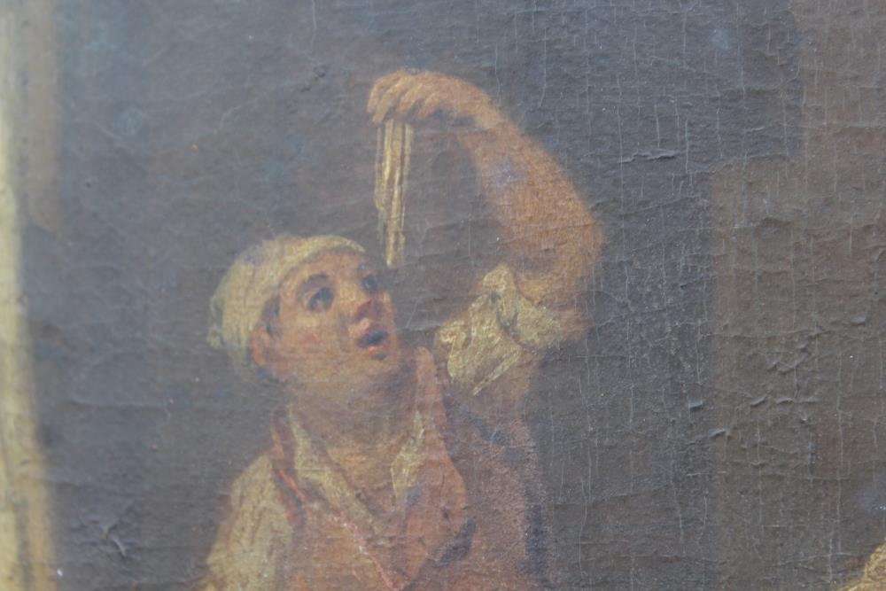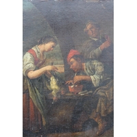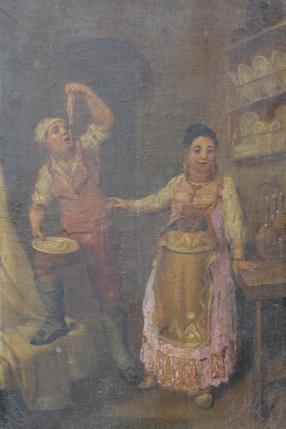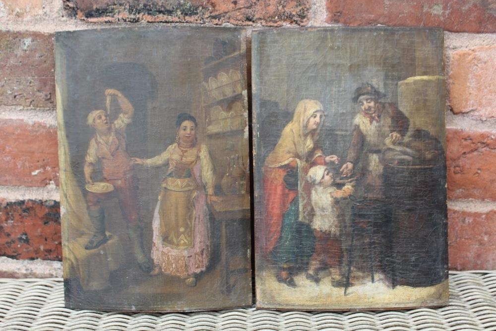 CIRCLE OF PIETR FABRIS (1740-1792). A pair of interior kitchen scenes, oil on curved panels, a pair, unframed, 26 x 17.8 cm (2)