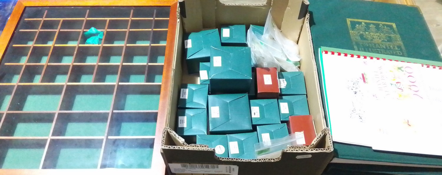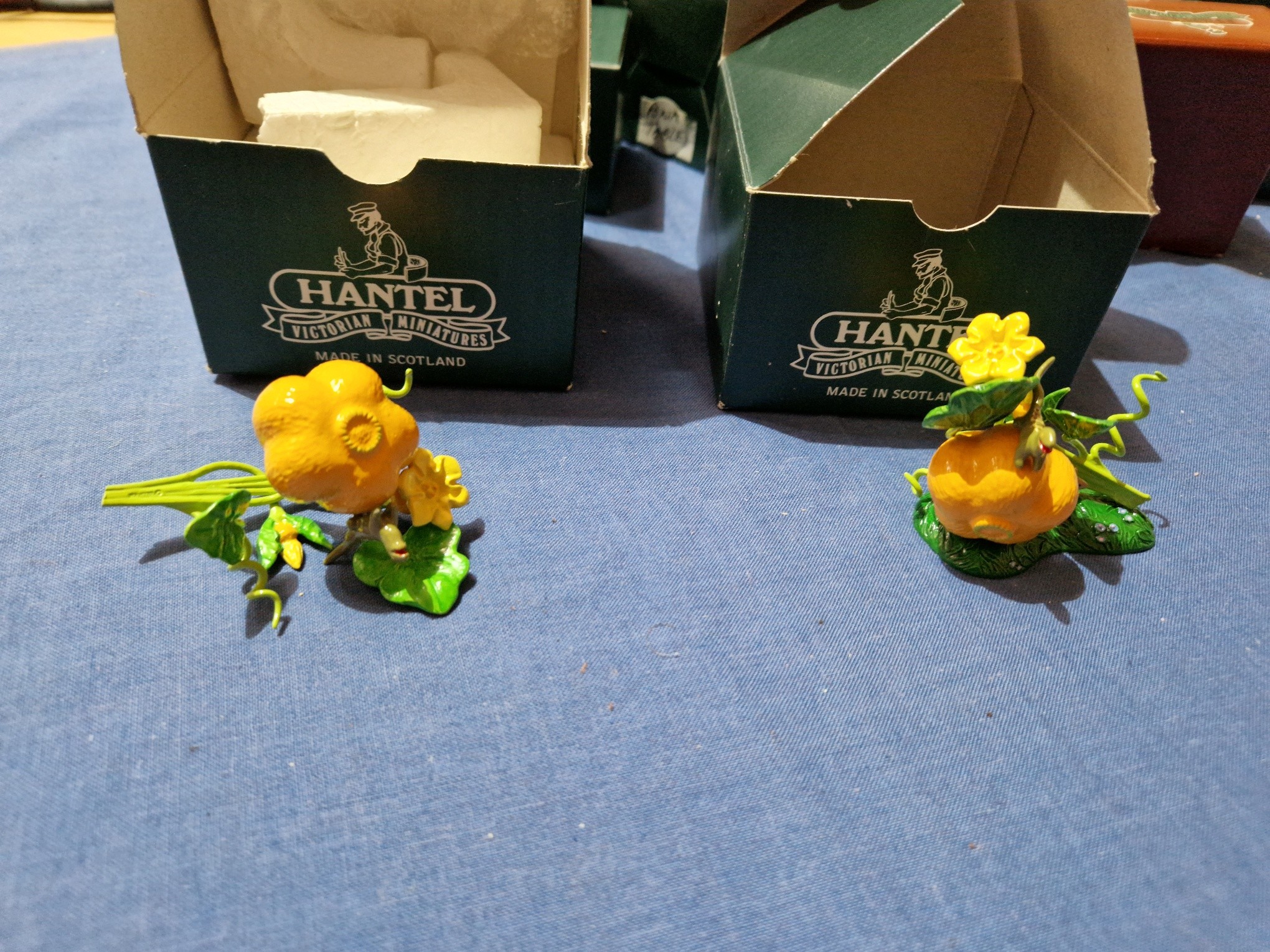 A box of assorted Hantel Victorian Miniatures models, together with a stand and bound volumes of The Illustrated Hantel Gazette.