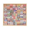 An unusual display of razor blade boxes. Approximately 88 different packs, in a pine mount with glazed top.