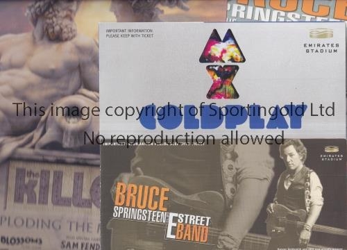 CONCERTS AT ARSENAL F.C. Flyer and ticket for Bruce Springsteen 31/5/2008, 2 tickets in wallet for Coldplay 2/6/2012 and flyer for The Killer Mirage Tour. Good