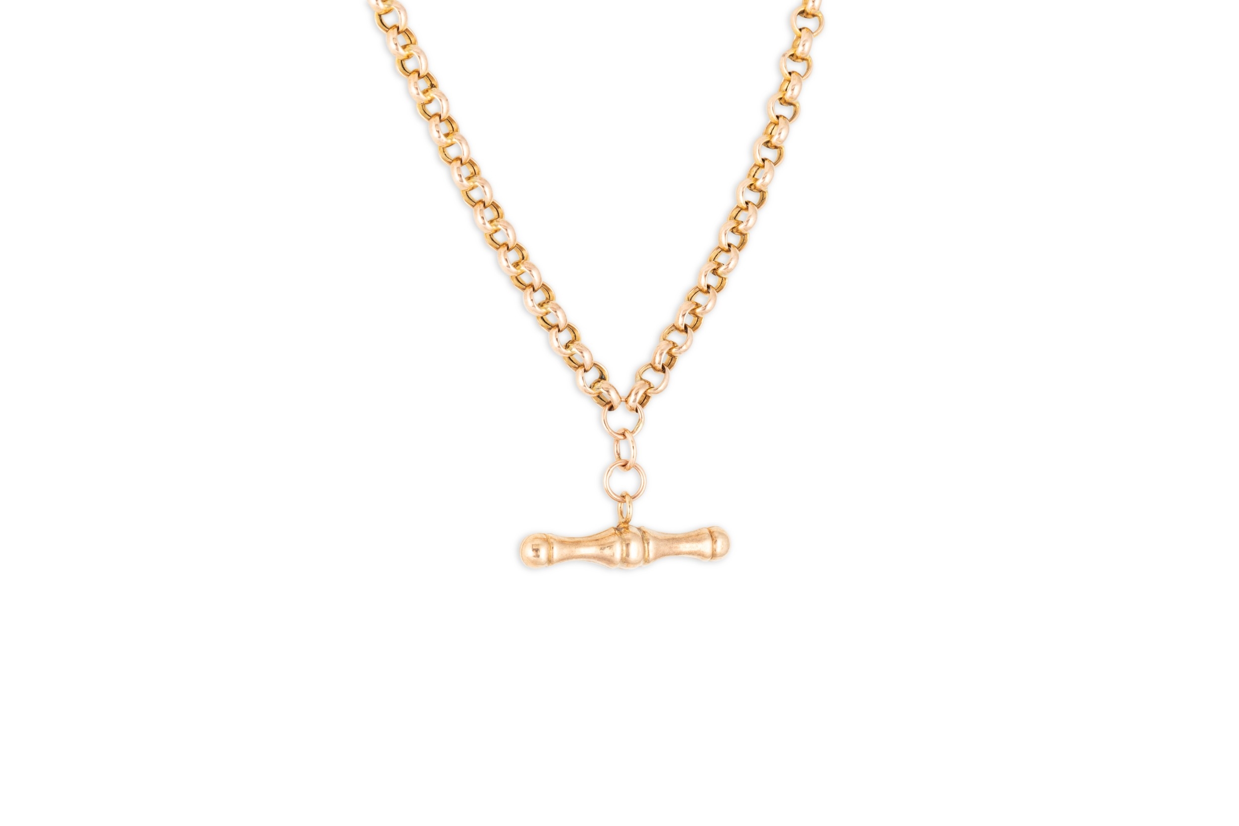 A 9CT GOLD BELCHER LINK CHAIN, with t-bar, 9.3 g.