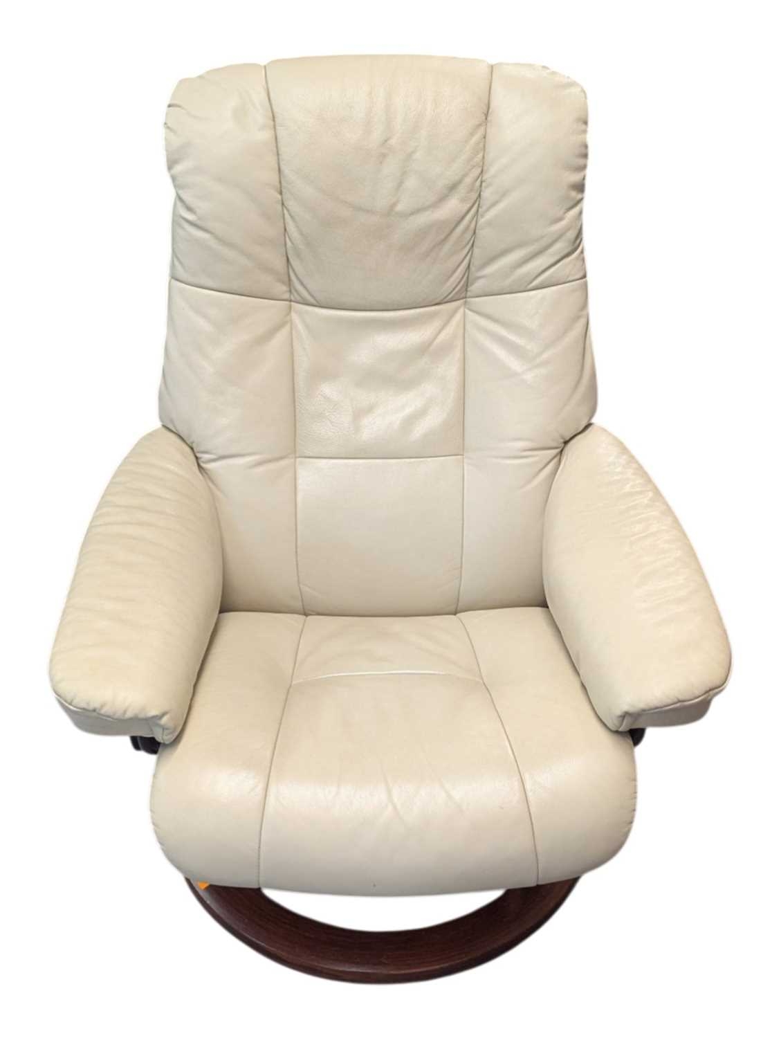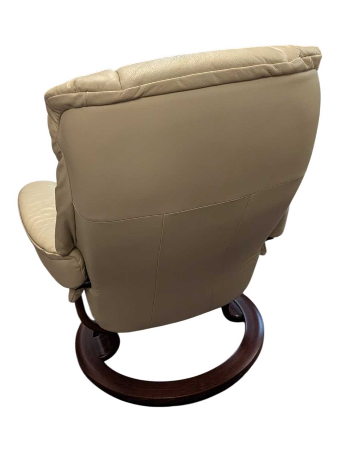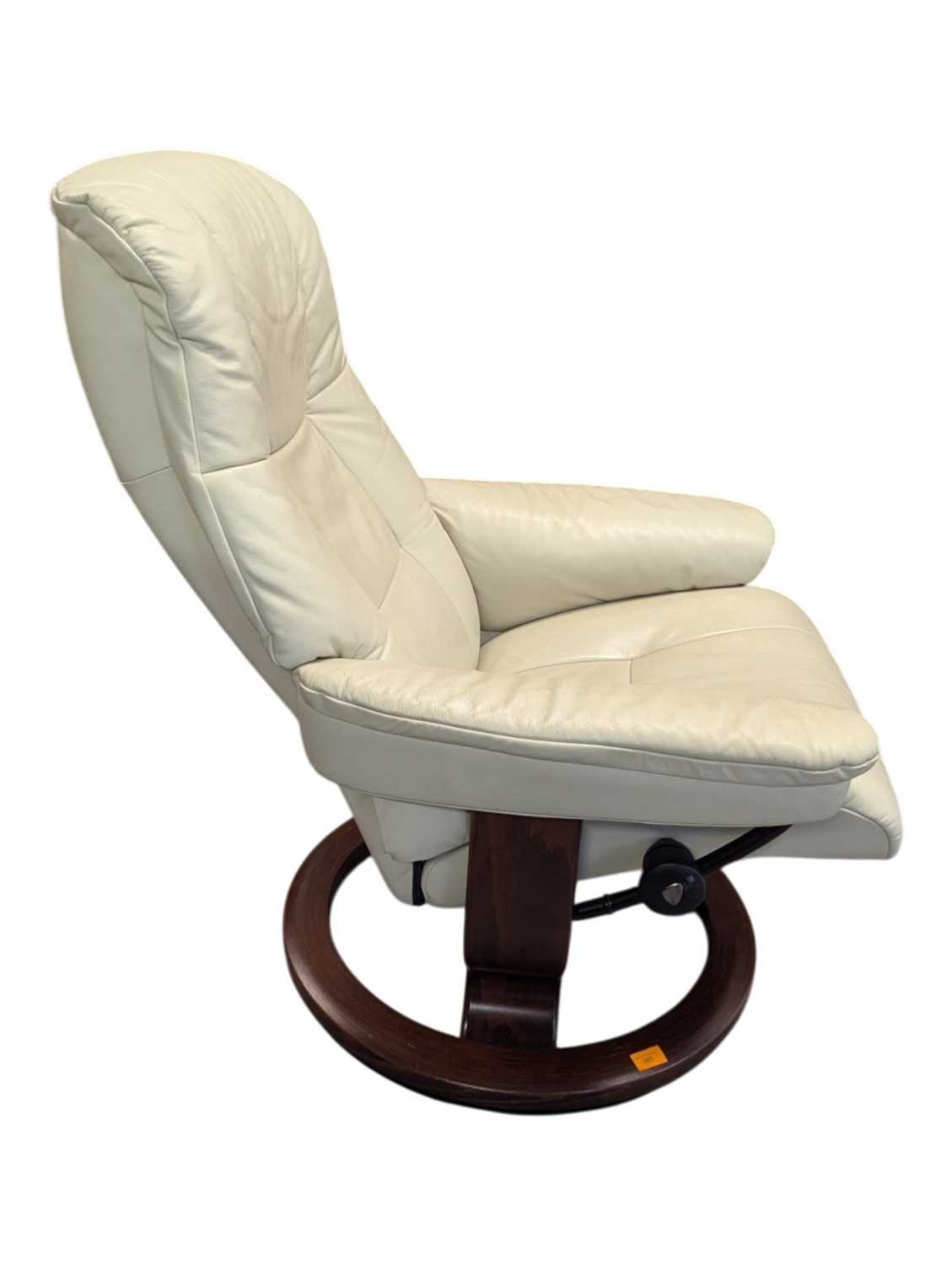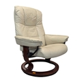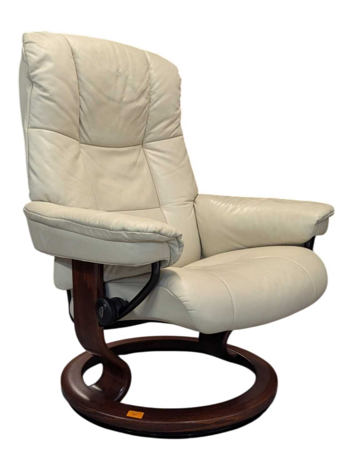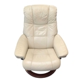 A vintage mid 20th century Ekornes Stressless reclining armchair. In Chelsea Paloma Grey with light stain to the bentwood base. Measures approx: 99x75x76cm