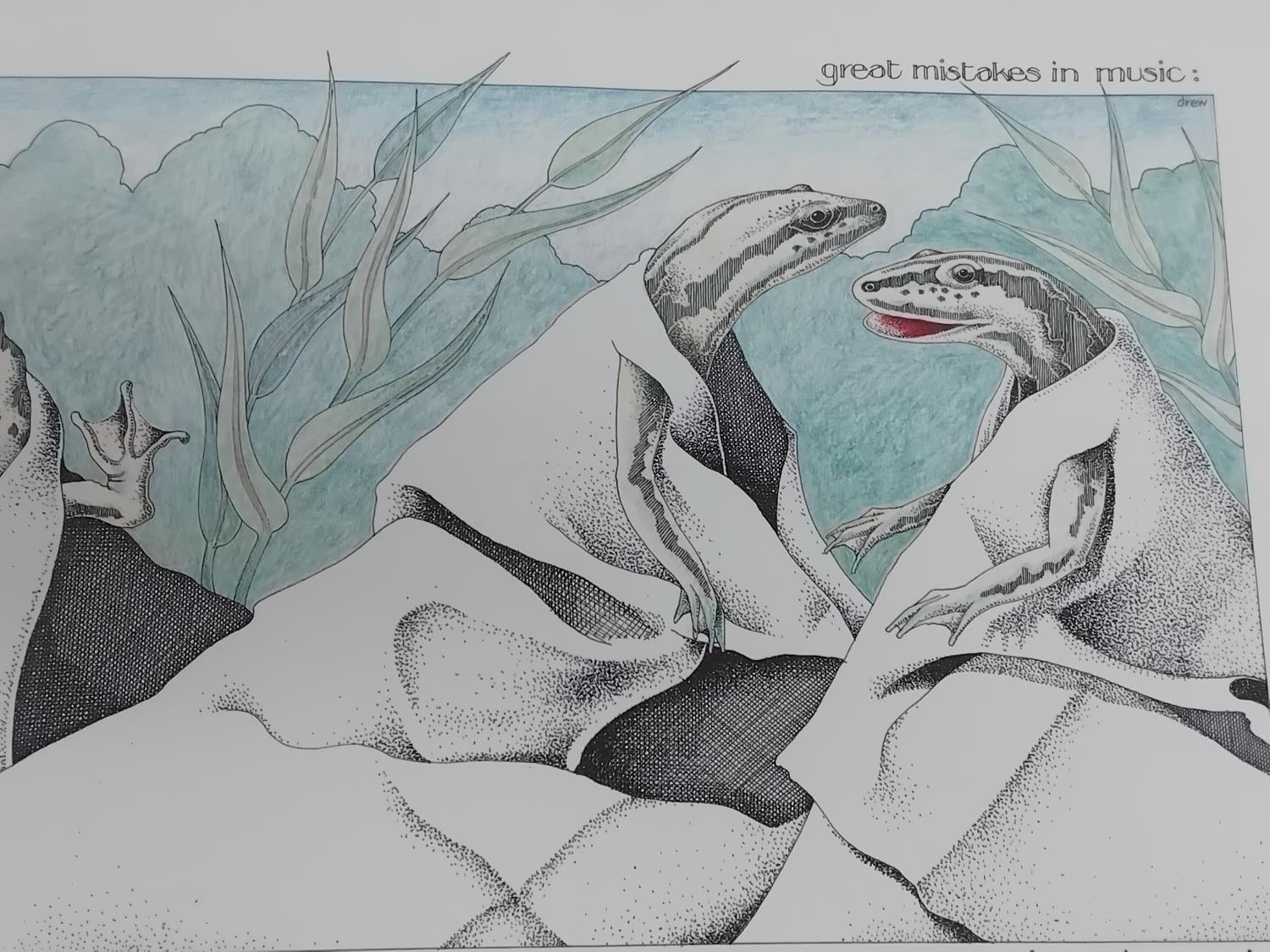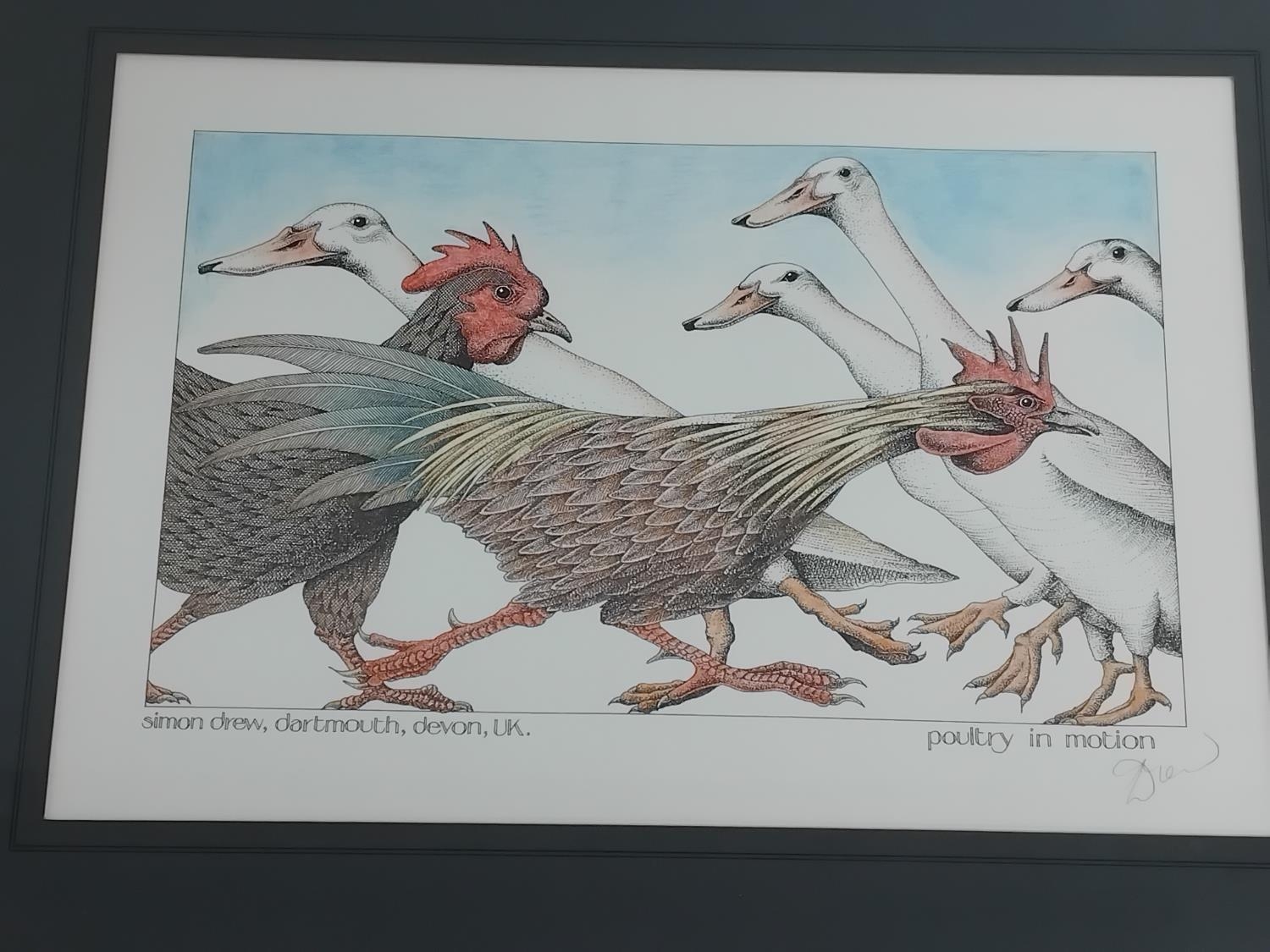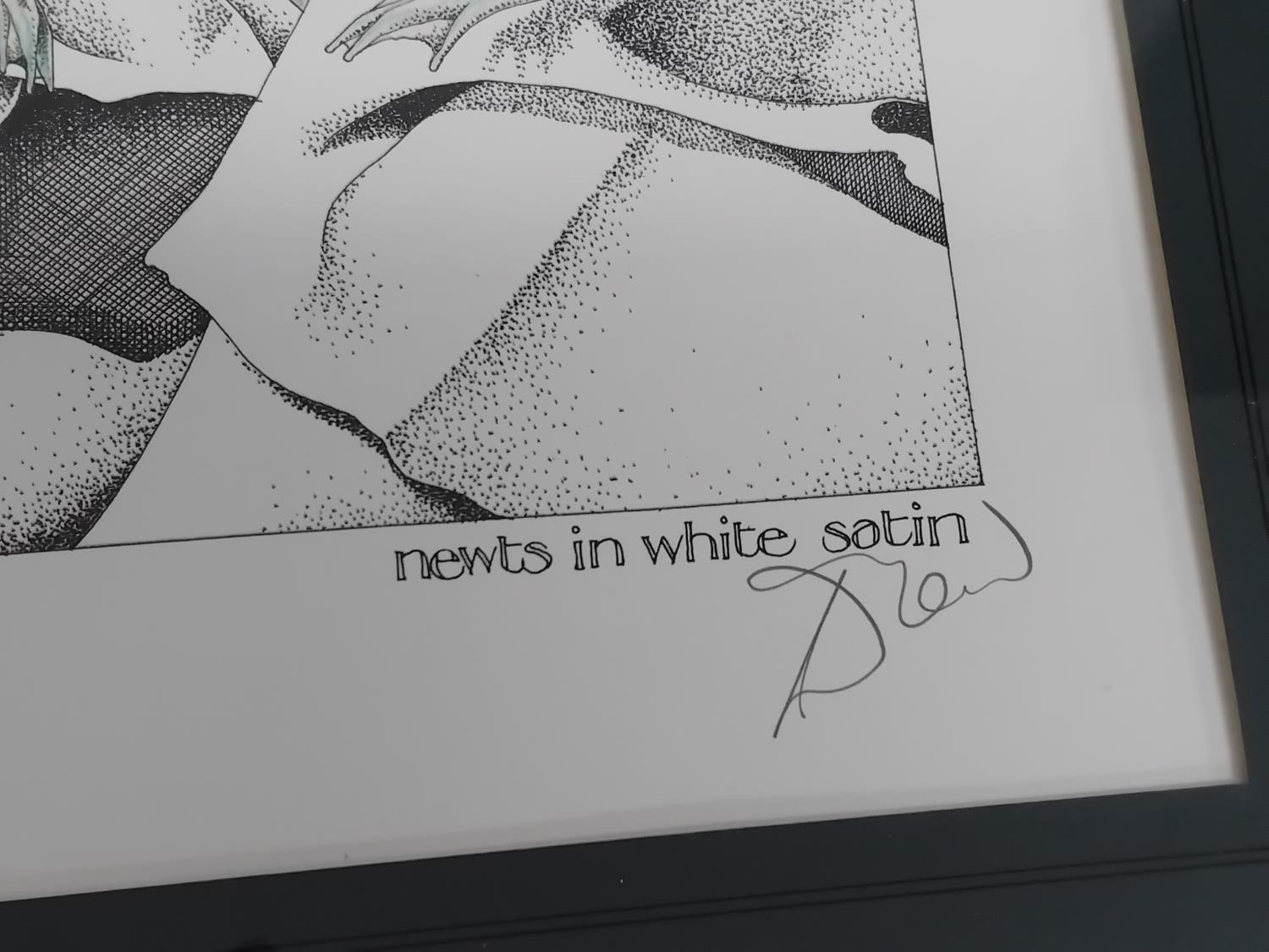 Framed and Mounted Simon Drew 'Great Mistakes in Music' Prints (2), 'Poultry in Motion' and 'Newts in White Satin'. Both Pencil Signed Bottom Right. 50cm x 38cm.