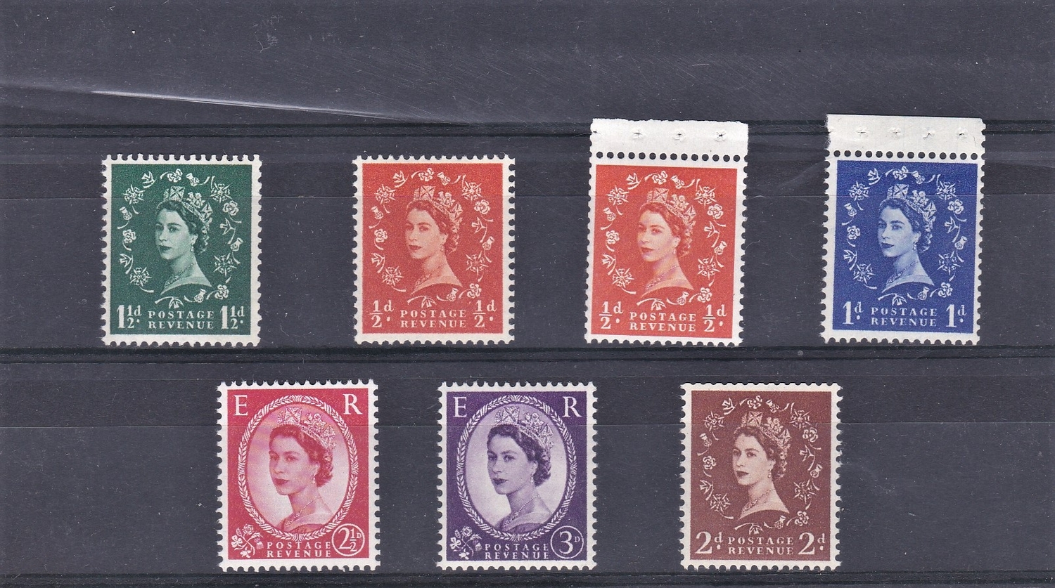 Great Britain 1958-65 Crowns wmk inverted 1/2 to 3d, m/m including small 2d SG J73wi