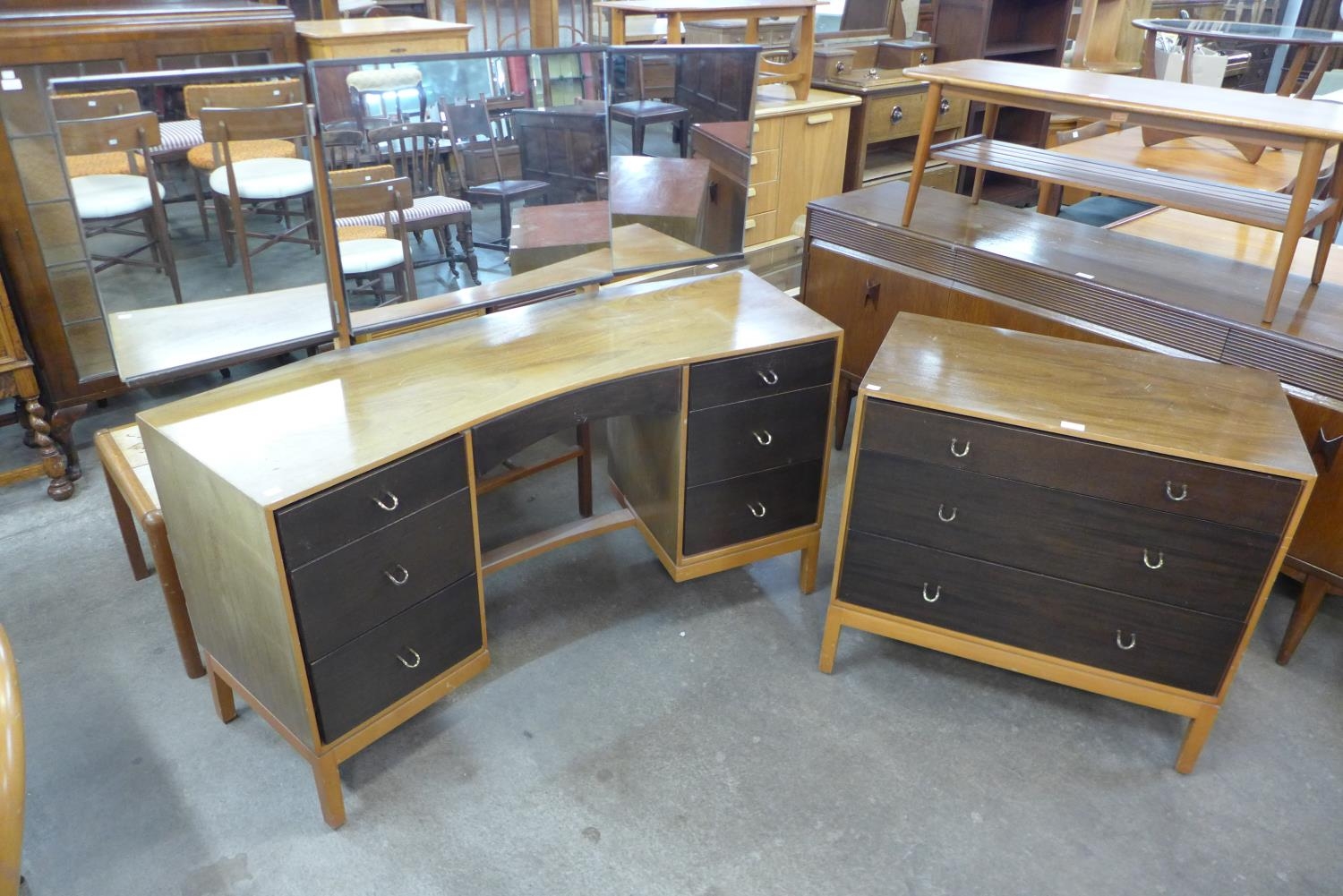 A Stag two tone walnut chest of drawers and matching dressing table, by John & Sylvia Reid