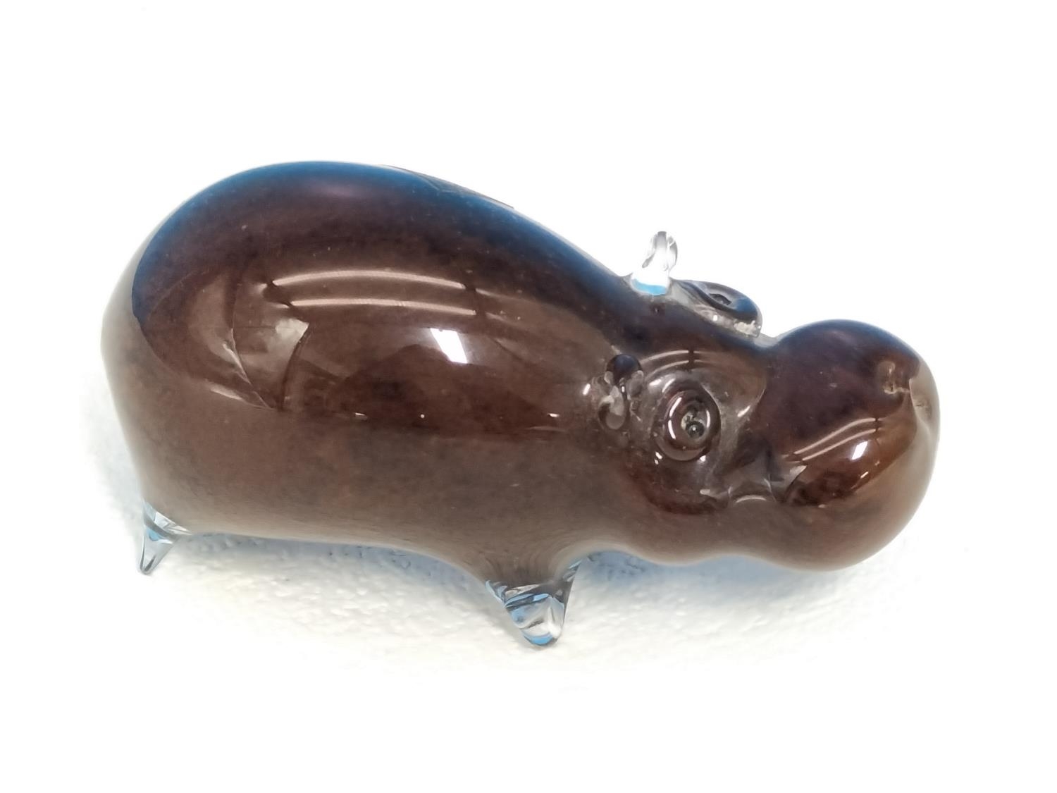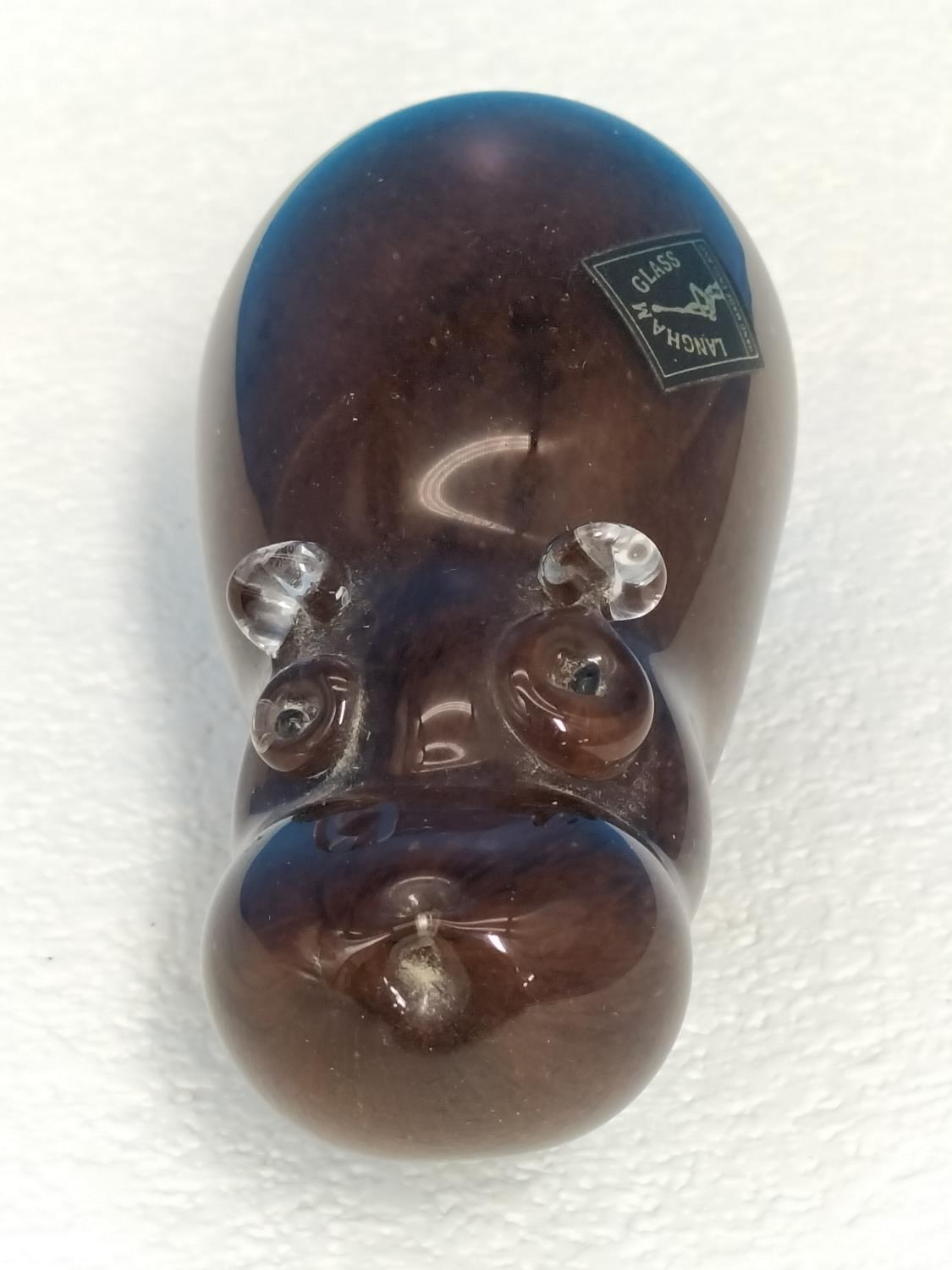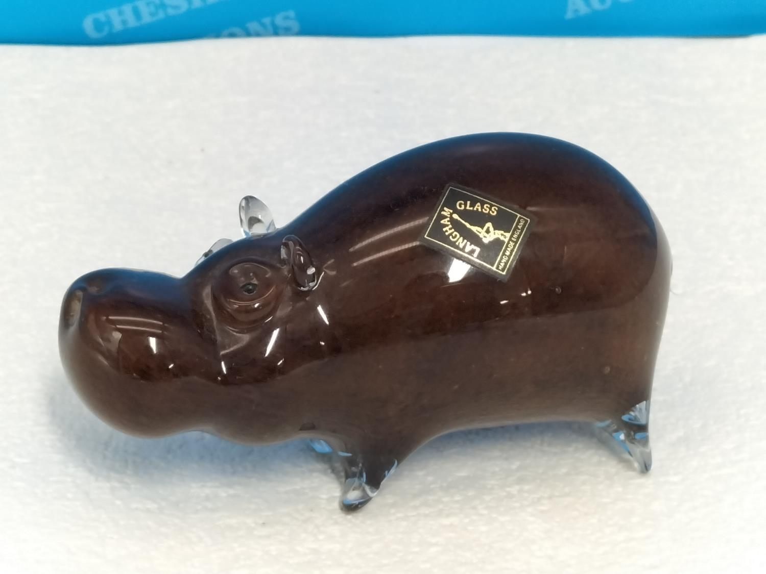 Langham Glass 'Hippo' Paperweight. 7cm High, 12cm Long