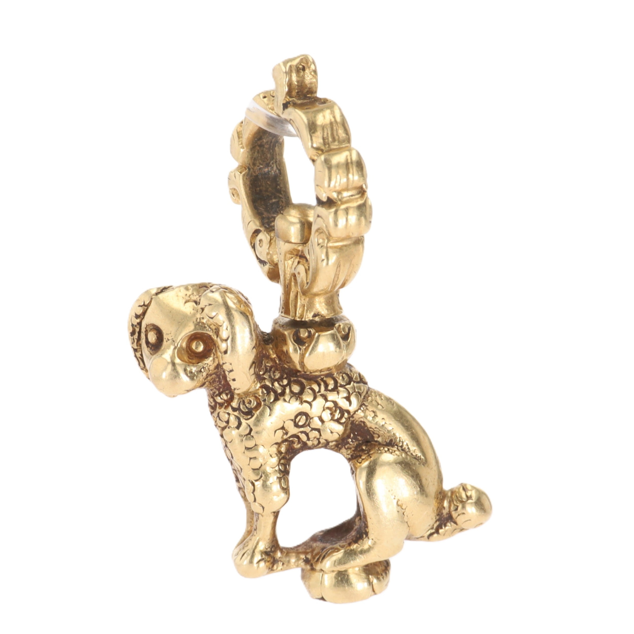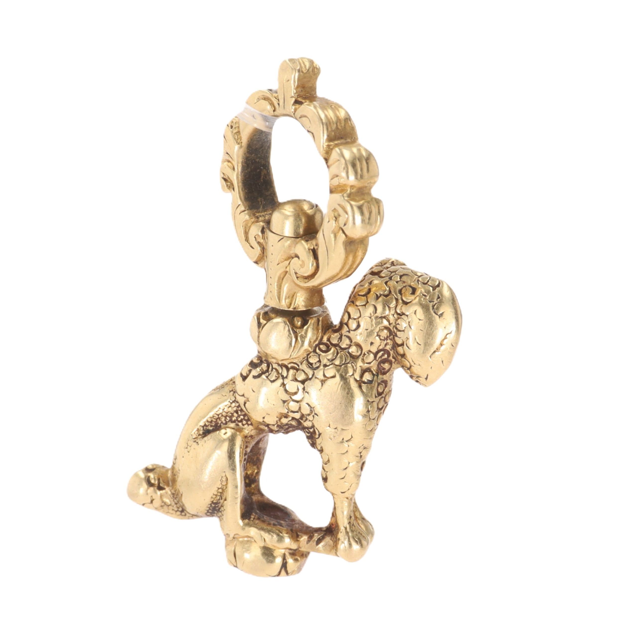 Antique Gold Spaniel Dog Watch Key Pendant Conversion. This piece has been tested as 15ct gold. There is light to moderate wear and scratches to the metal. the piece measures approximately 2.4cm in length, weighs in total 4.7g.