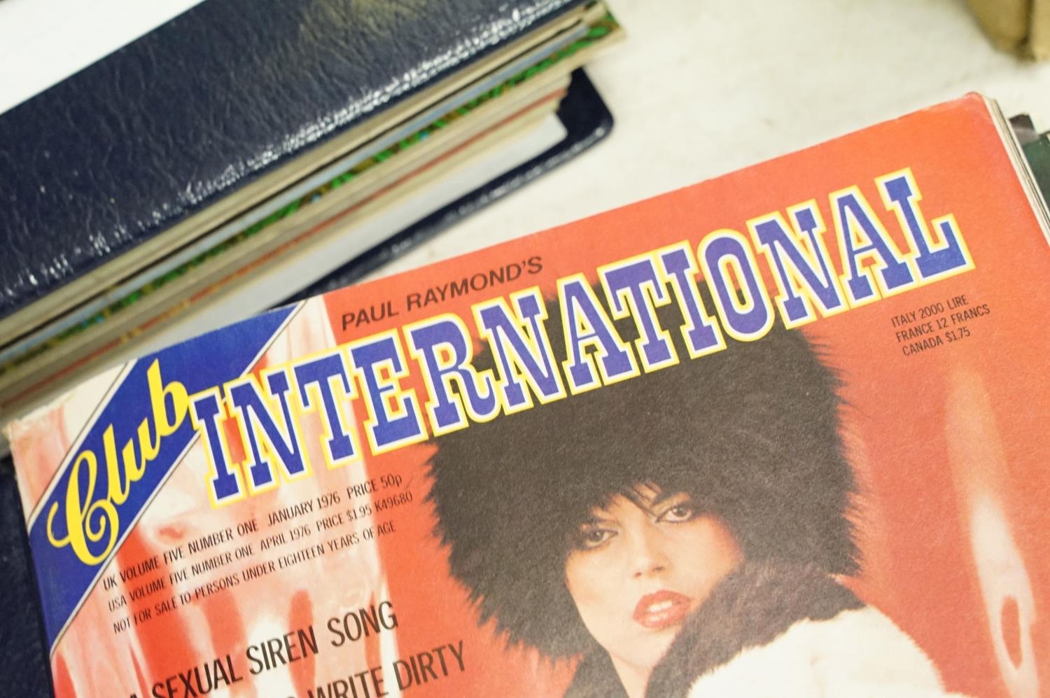 Collection of assorted 1970s erotic magazines to include Girls Illustrated, Club International, Mayfair, Mens Only, Late Night Extra.