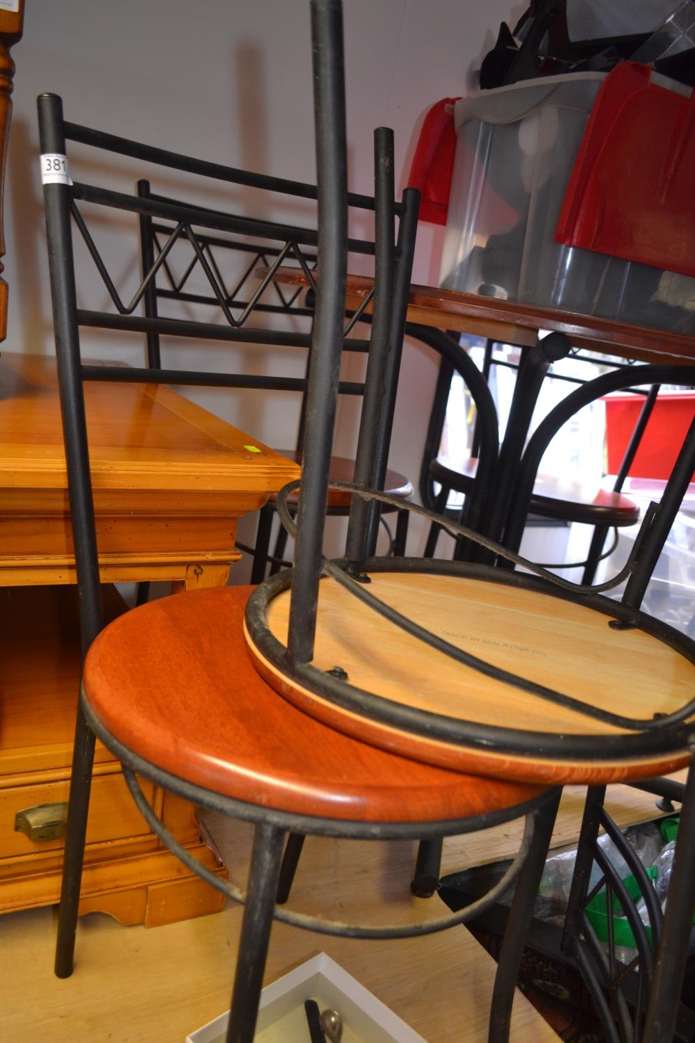 South East Asian bistro pedestal table & 4 chairs. Indoor use only. Table D92cm