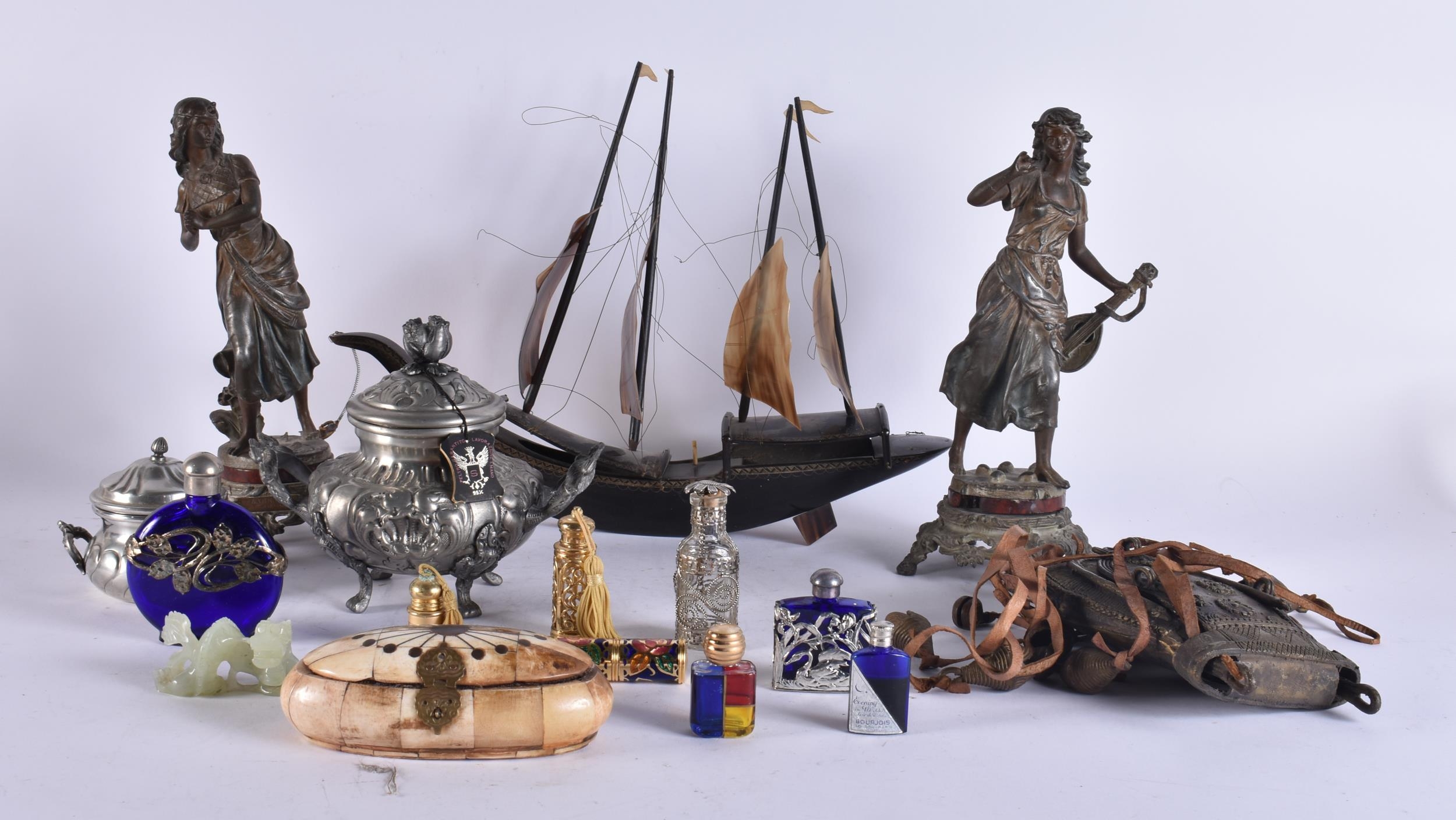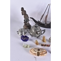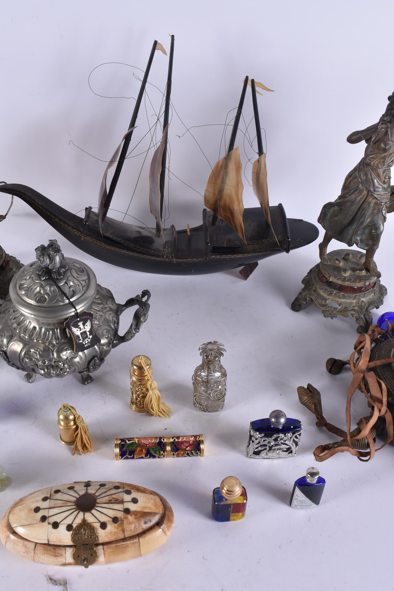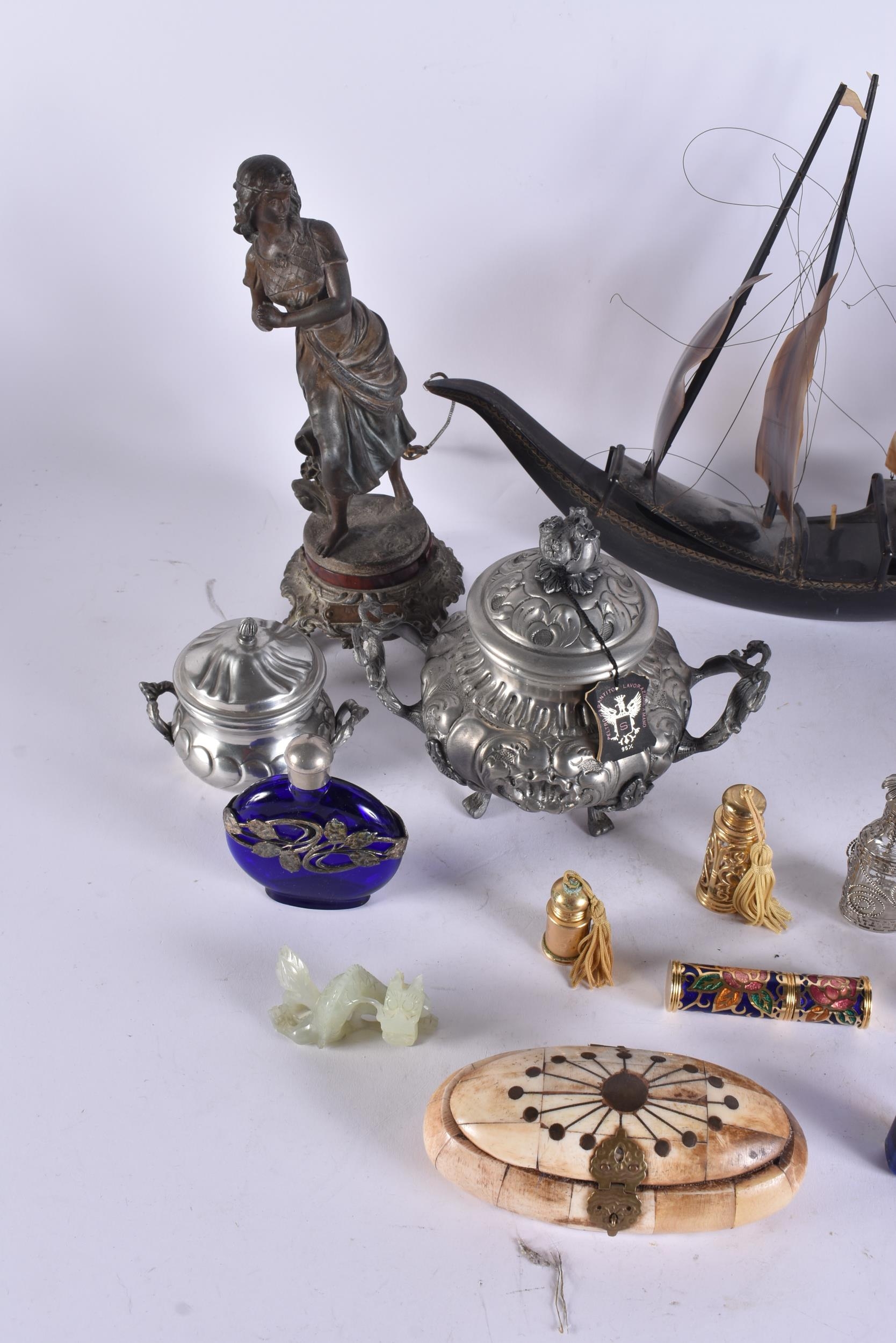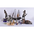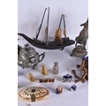 ASSORTED COLLECTABLES including a horn boat, pewter caddy etc. (qty)