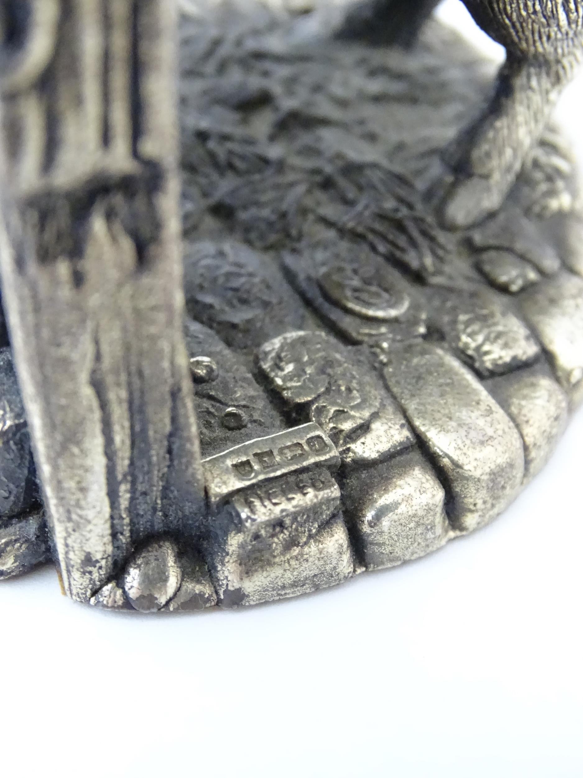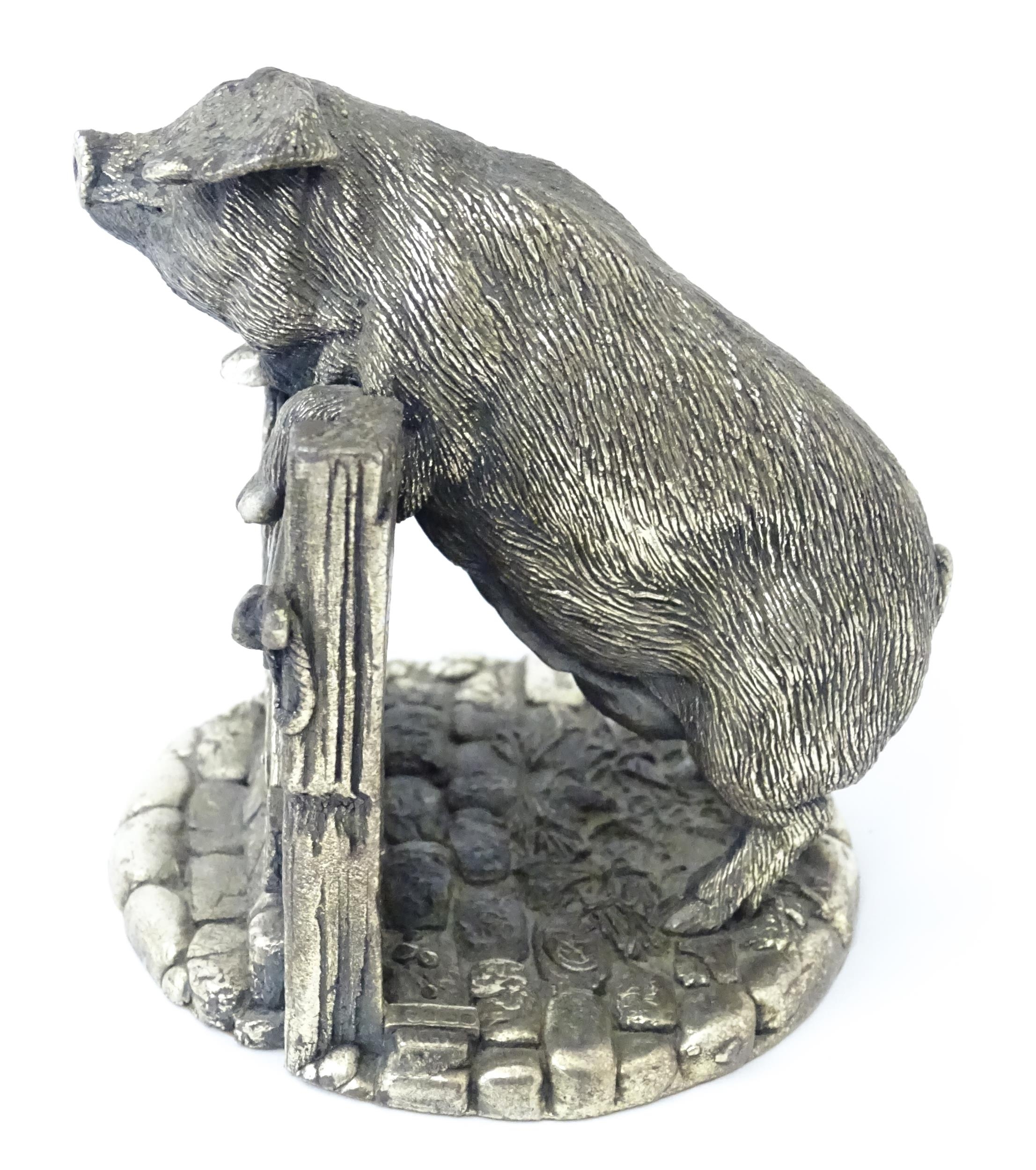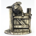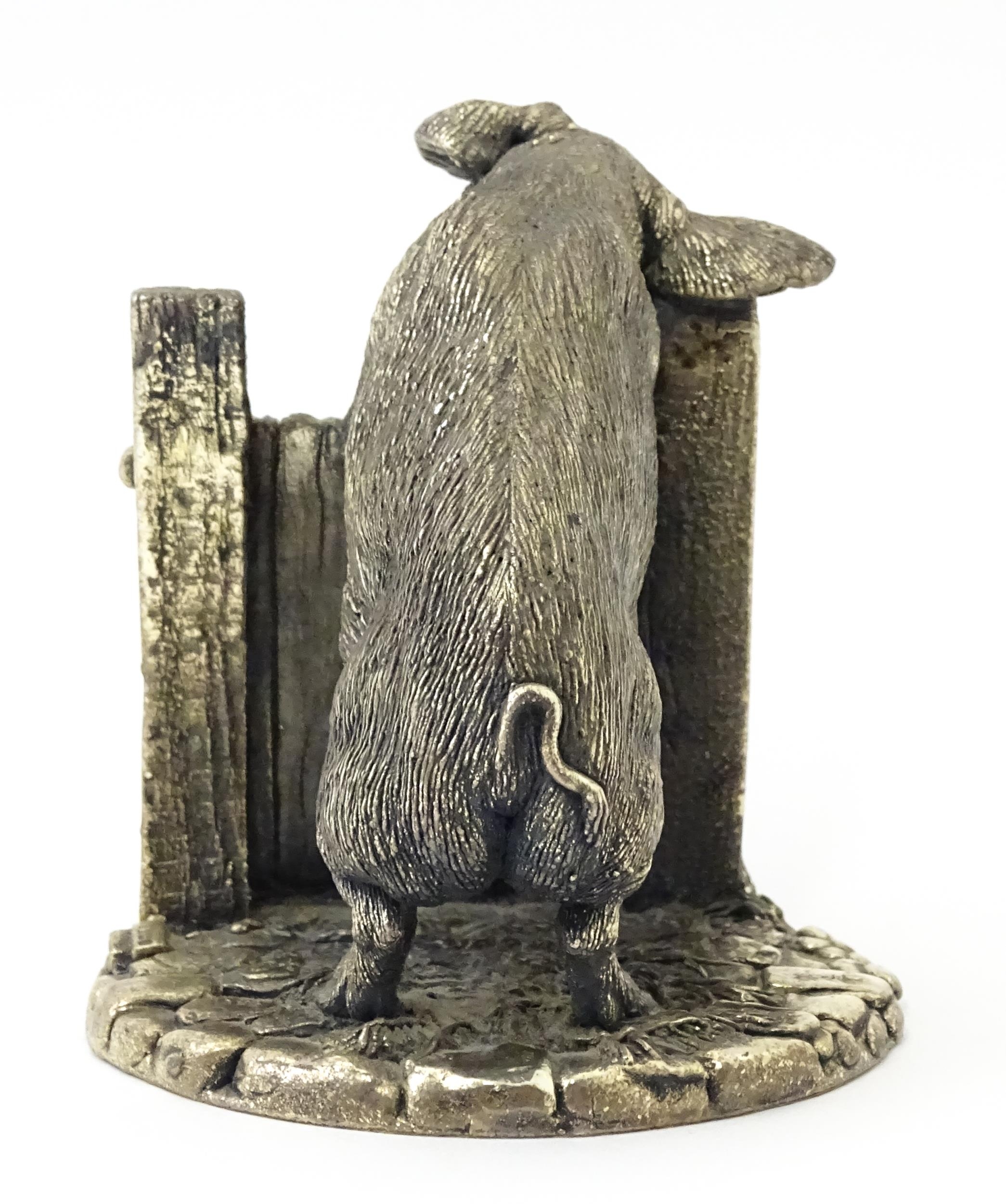 A Country Artist's silver covered model of a pig looking over a fence, hallmarked Birmingham 1993. Approx. 3 1/2" high