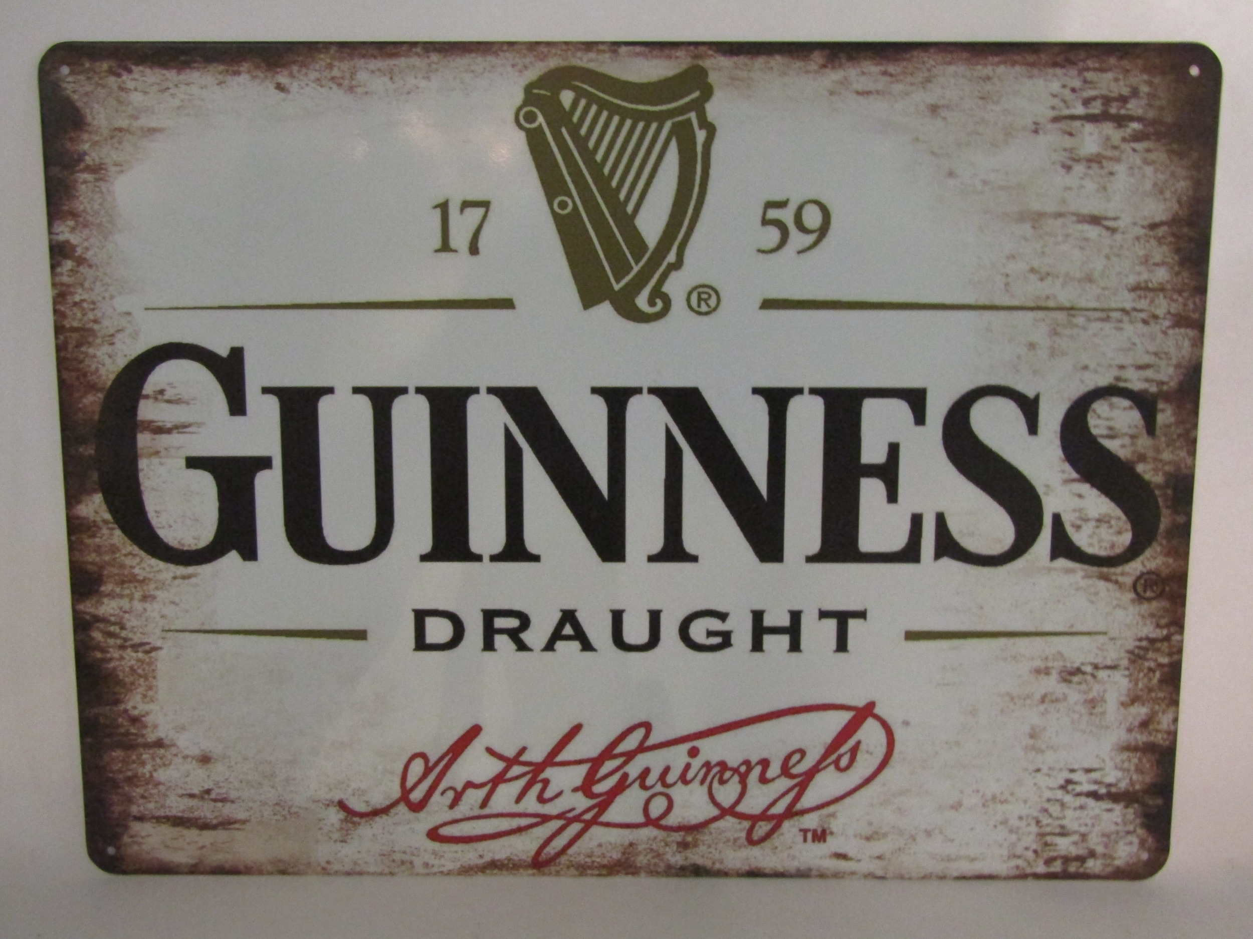 A Guinness Draught tin plate advertising sign, 30cm x 40cm