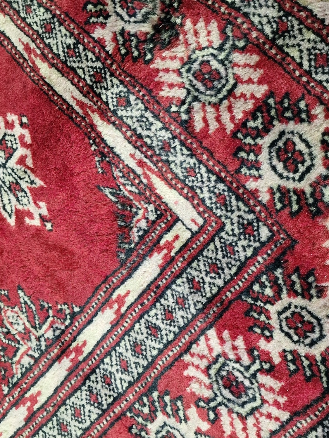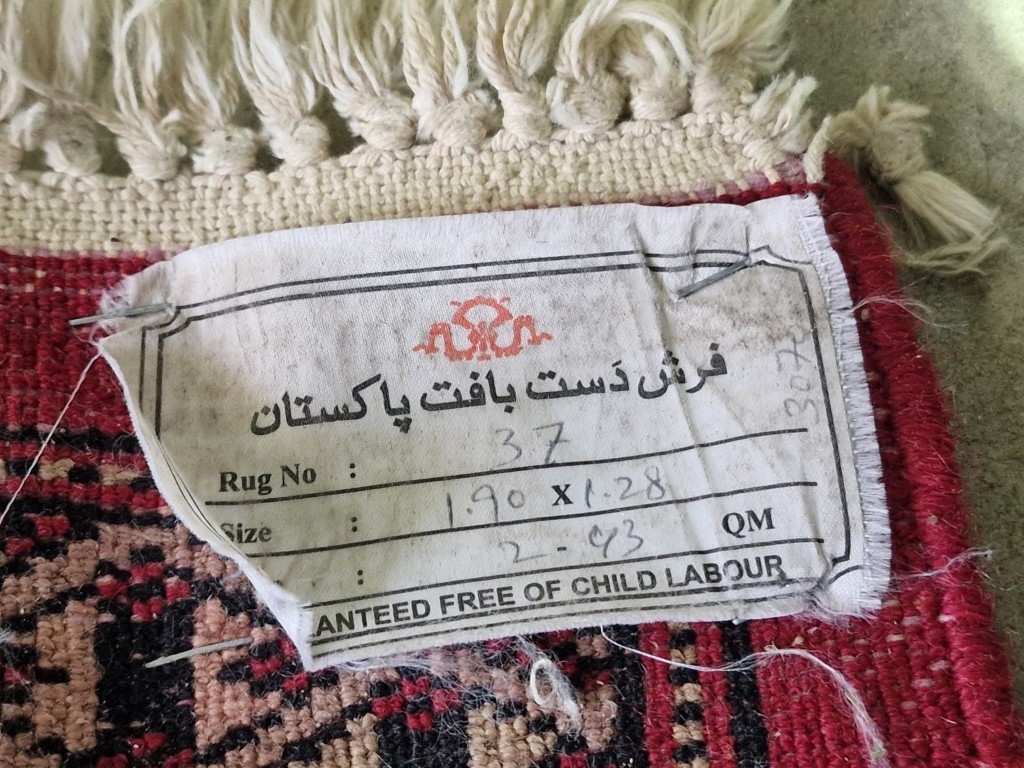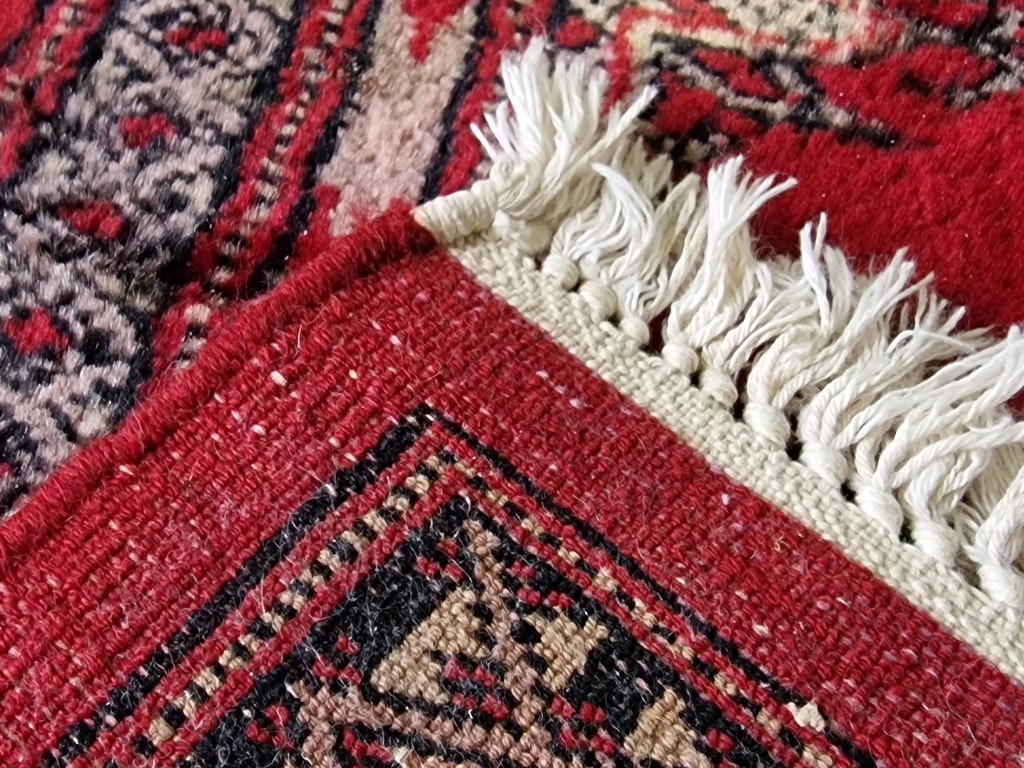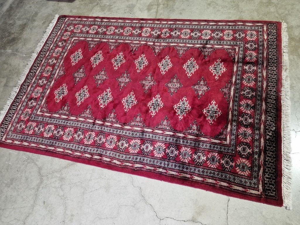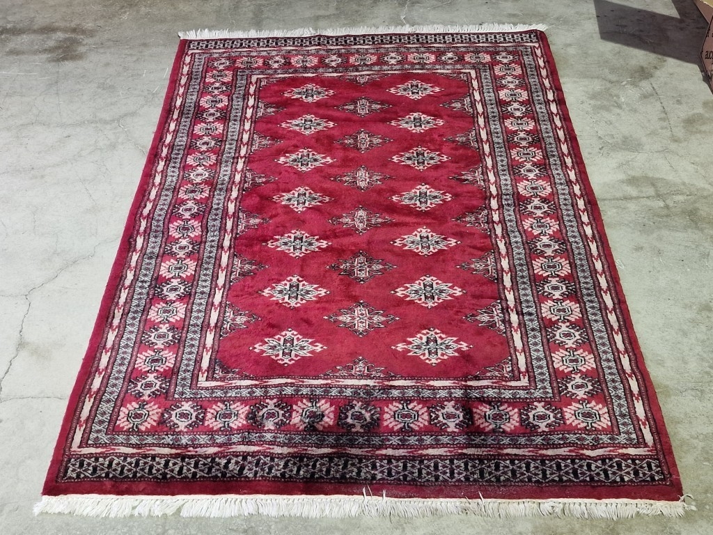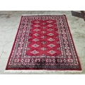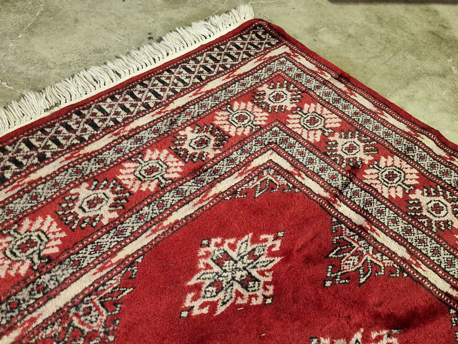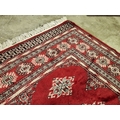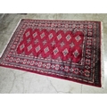 Hand Woven Persian Afghan Carpet in Traditional Red Tone Geometric Pattern with Wide Decorative Border, Kashmir, (Approx. 190 x 128cm)
