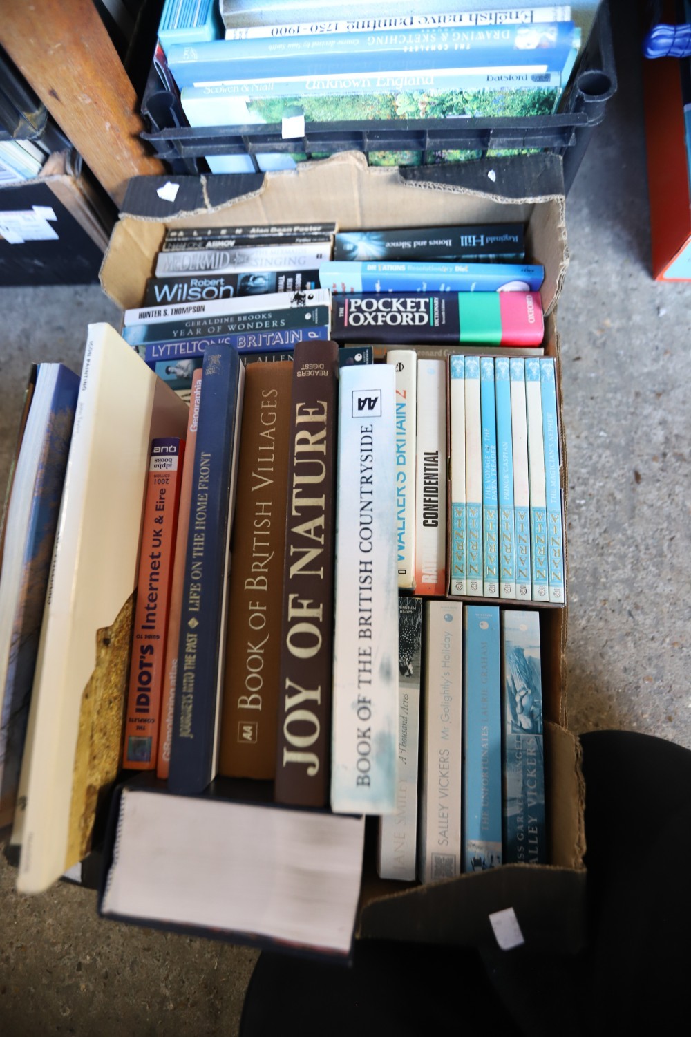 4 boxes of various books