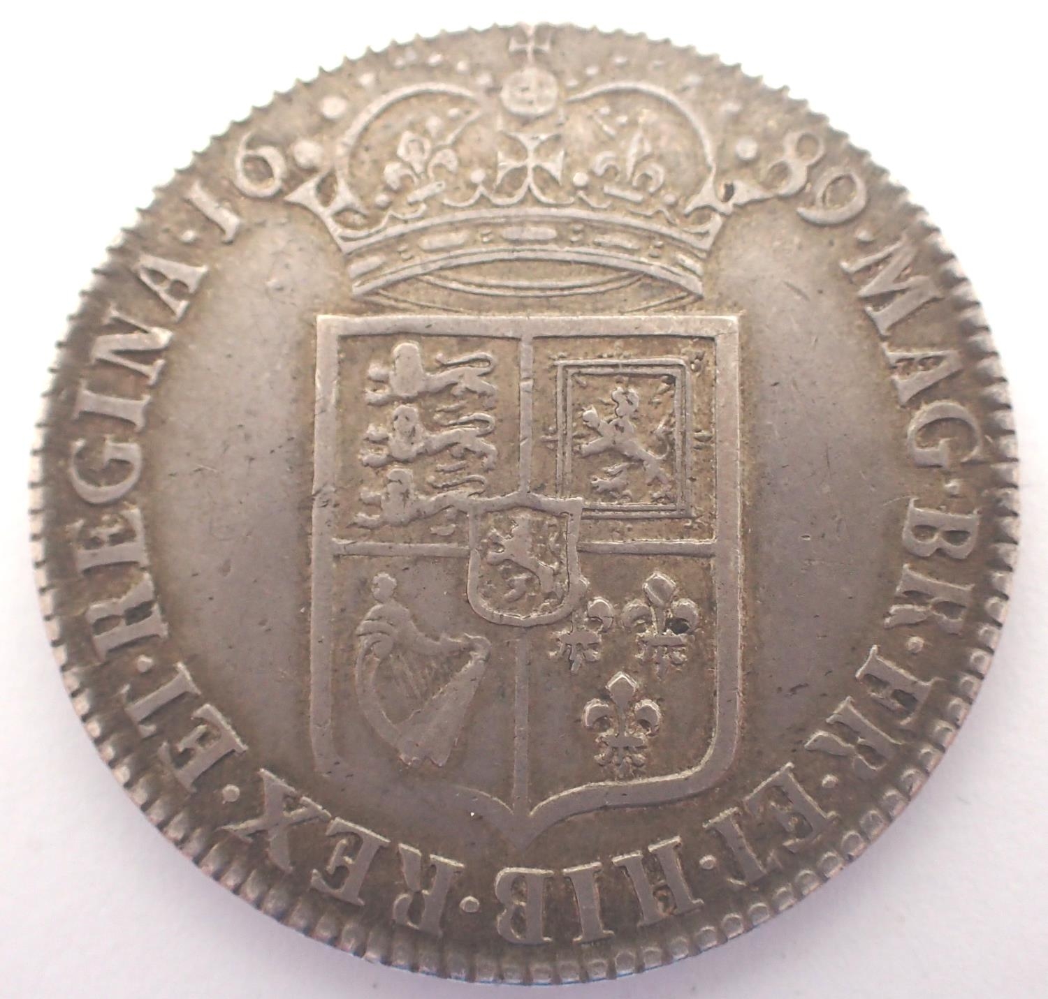 1689 silver half crown of William and Mary. P&P Group 1 (£14+VAT for the first lot and £1+VAT for subsequent lots)