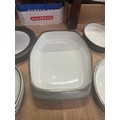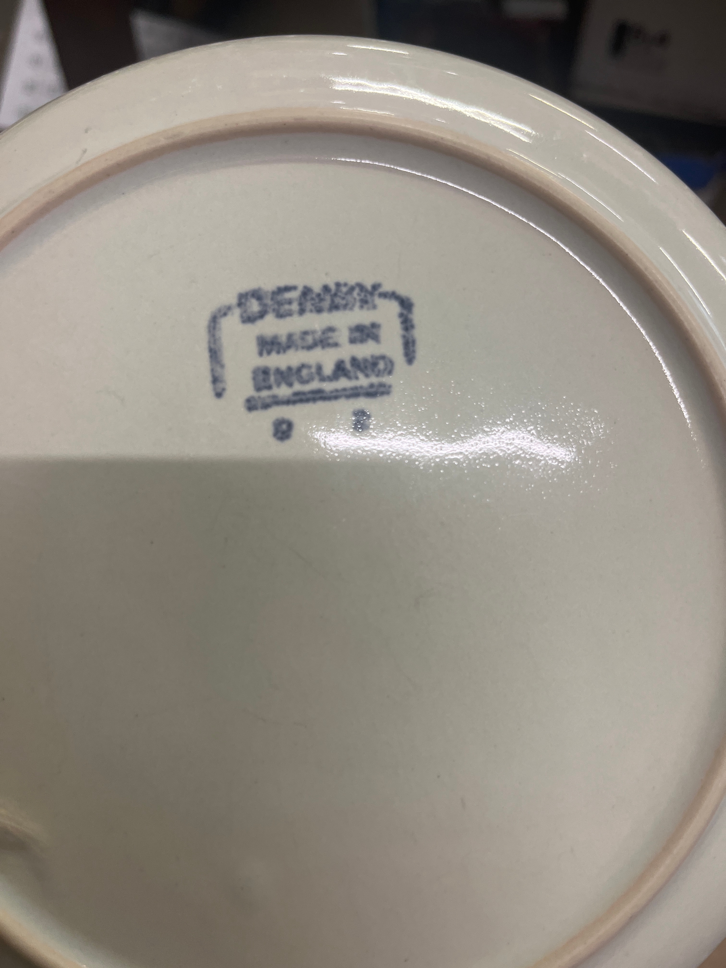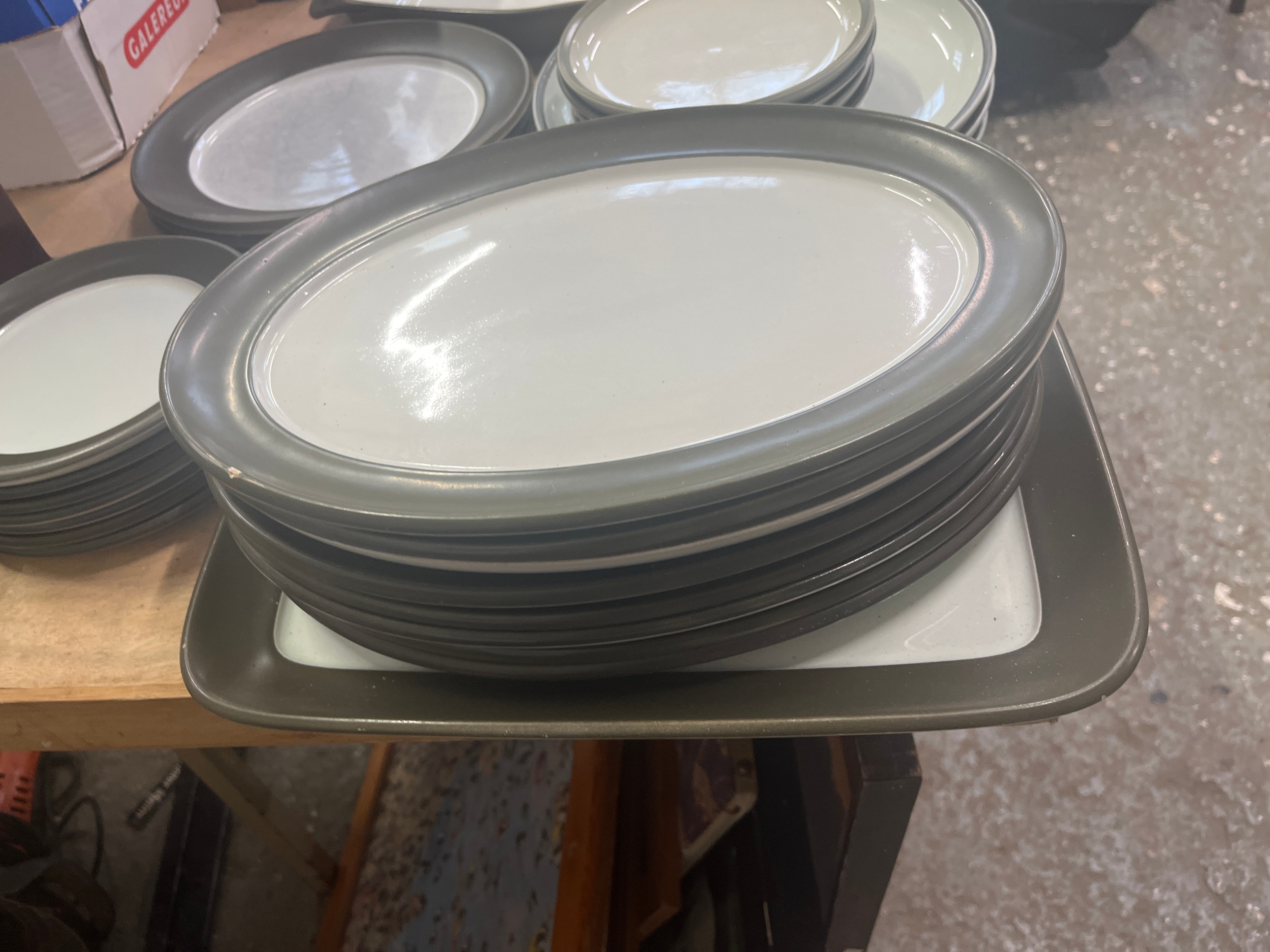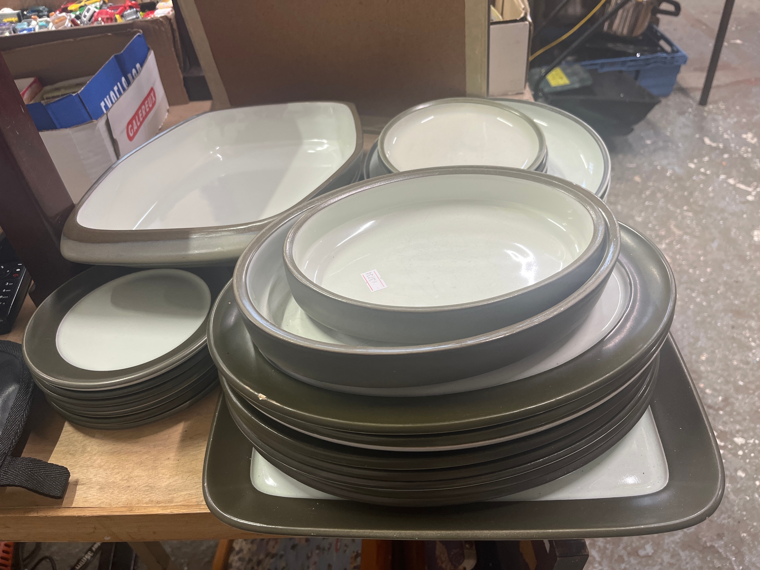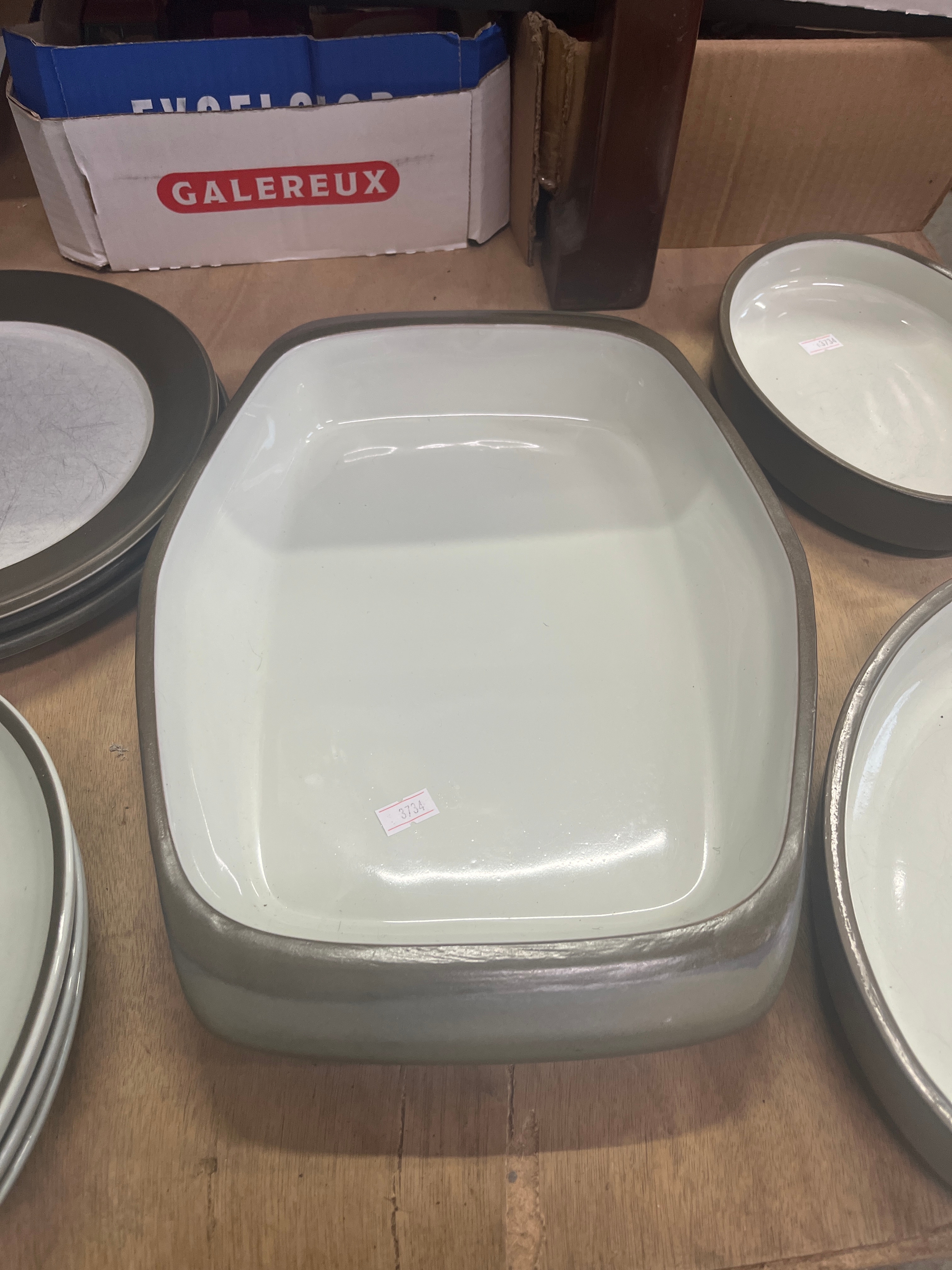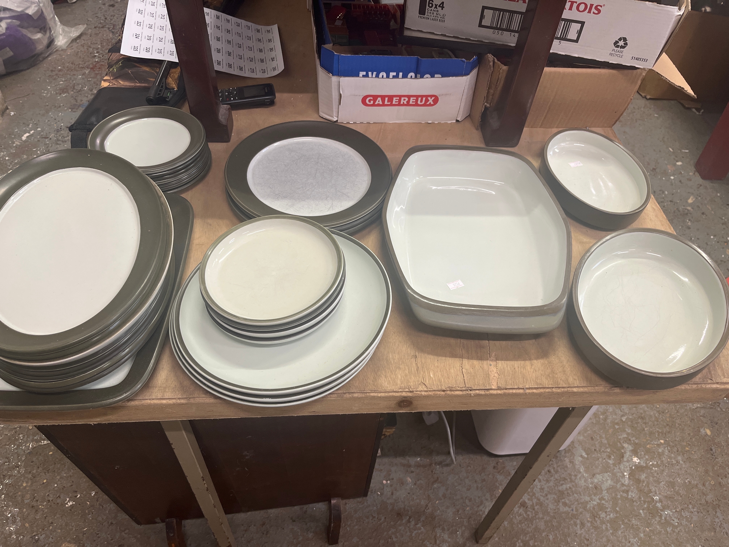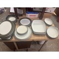 Quantity of Denby oven to table ware plus large oval plates, dinner plates and side plates in White with Moss Green edging
