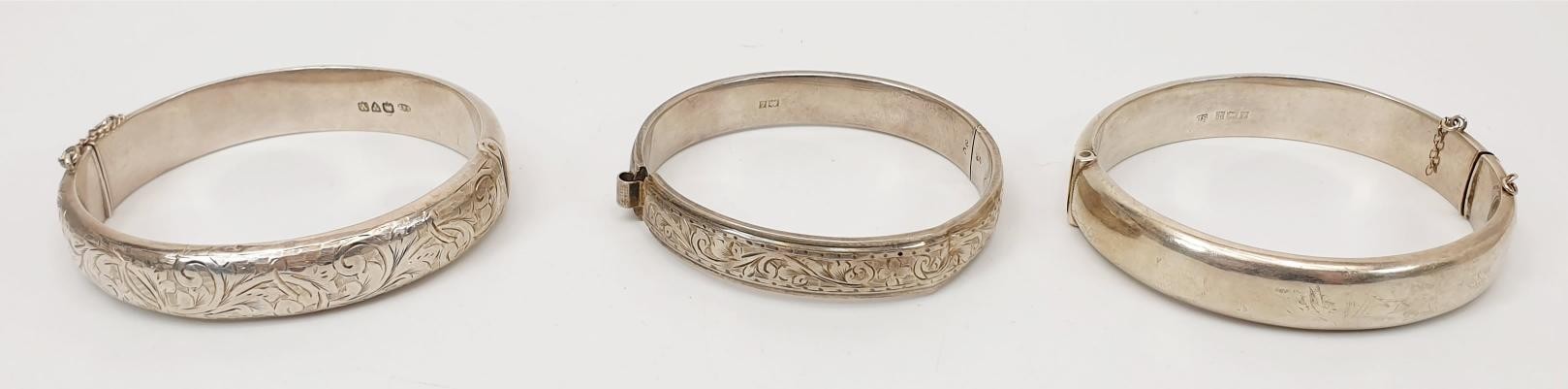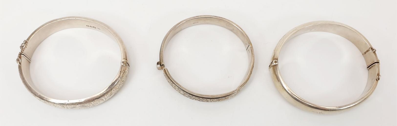 Three silver bangles each A/F, weight 53g. UK shipping £14.