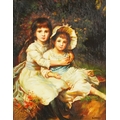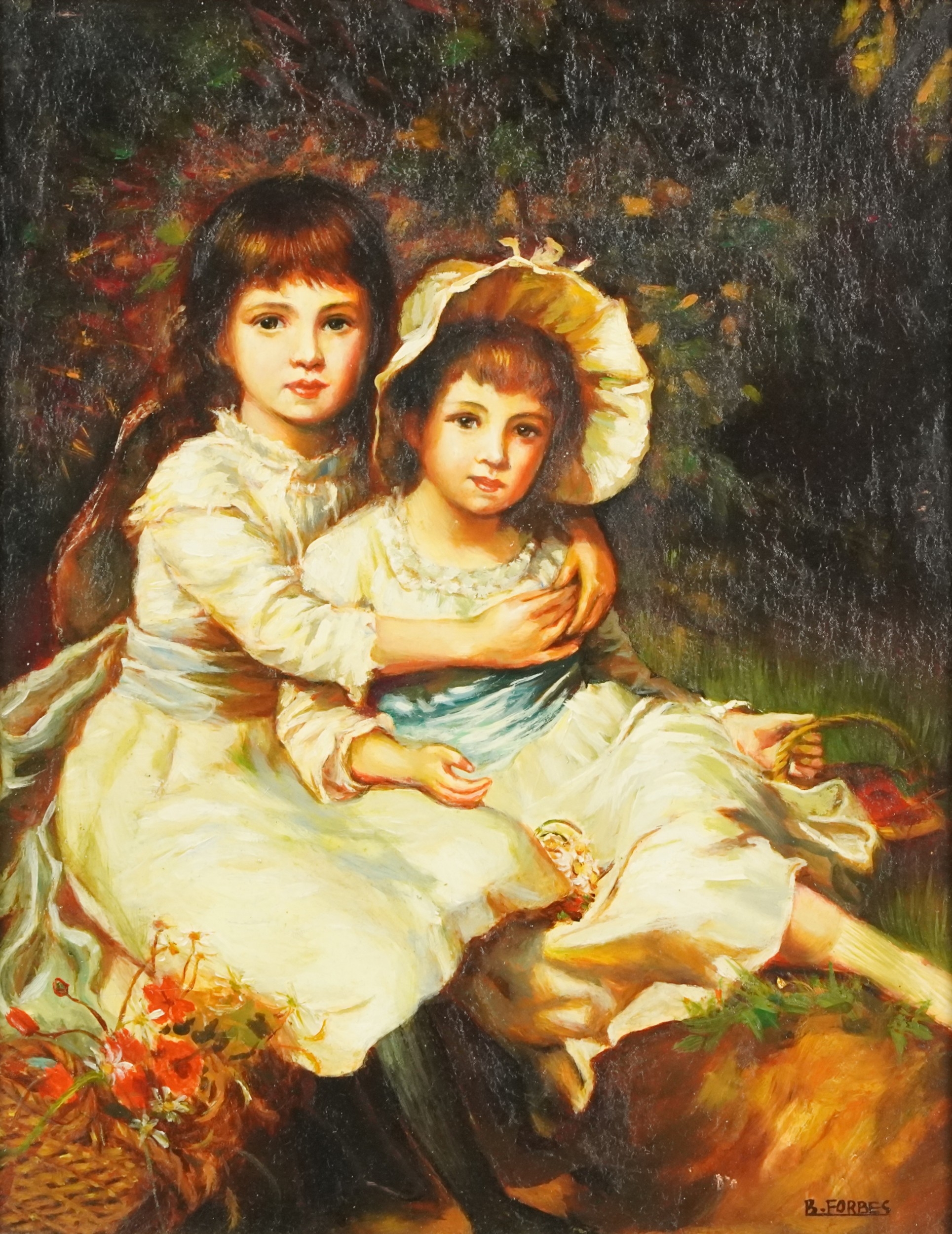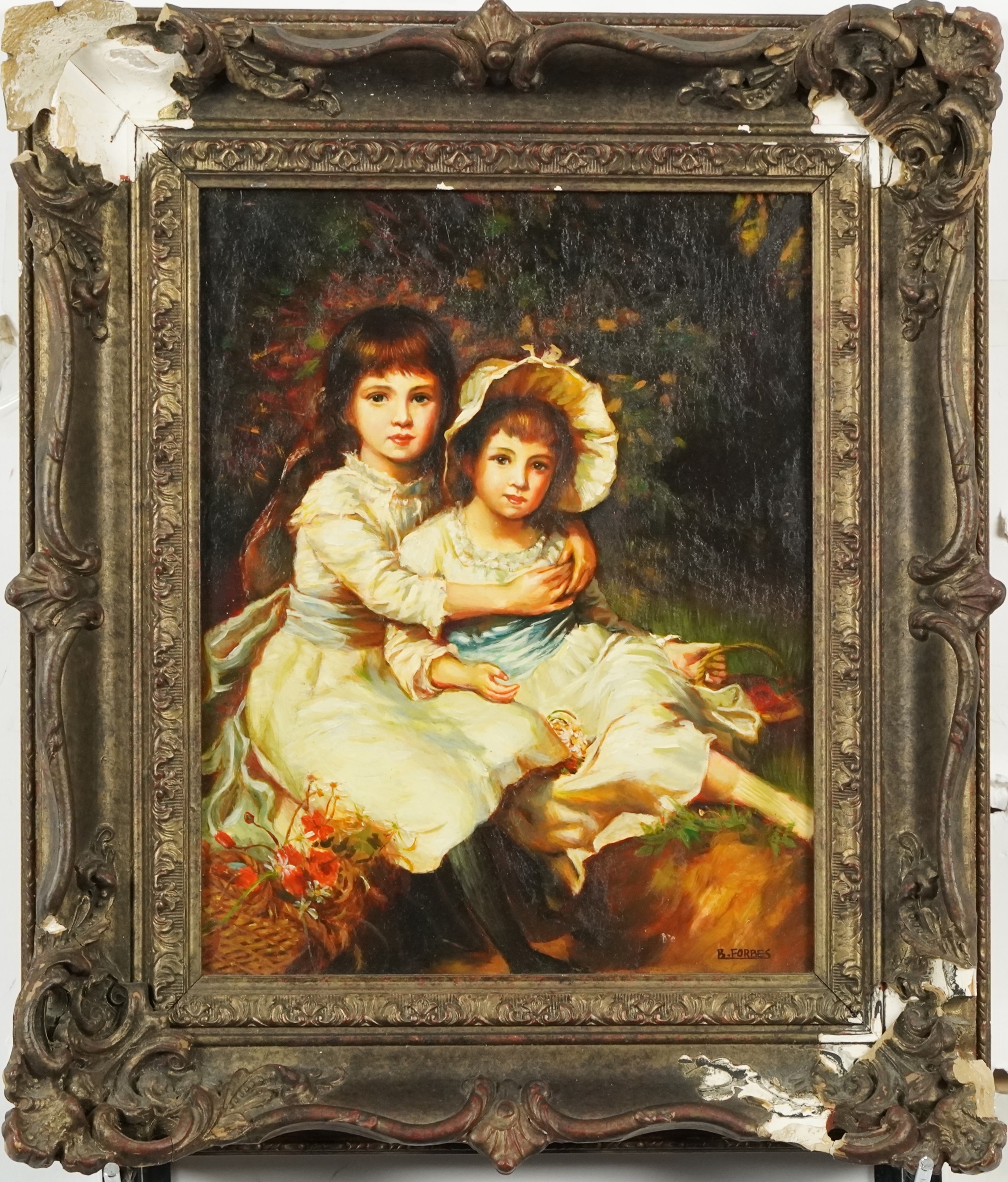 B. Forbes - Portrait of two young girls, 20th century British school oil on board, framed, 28cm x 22cm.