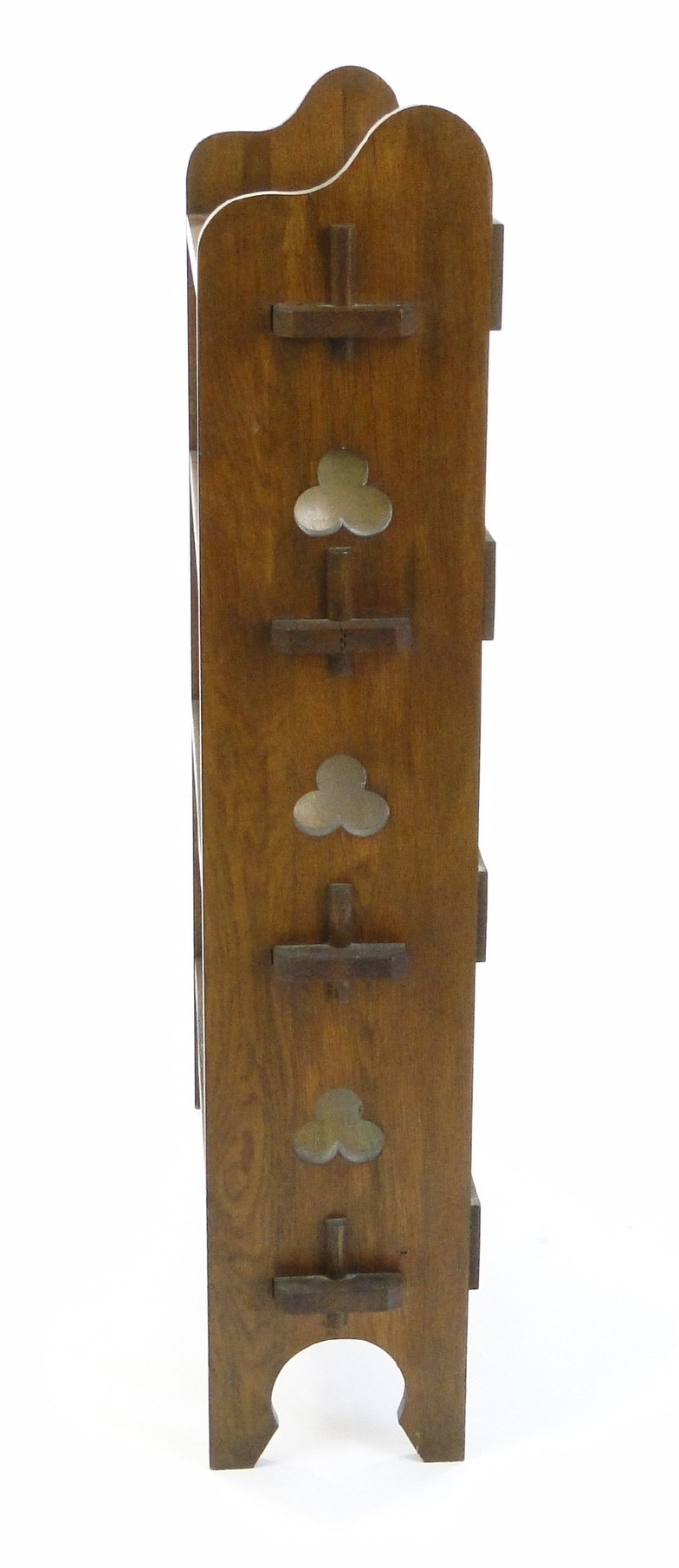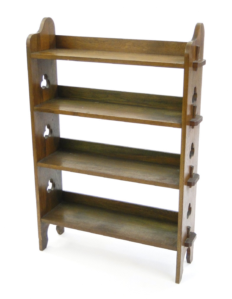 Arts and Crafts Oak four tier open bookcase with pierced club motif to each side panel, 117cm high x 82cm wide x 24cm deep