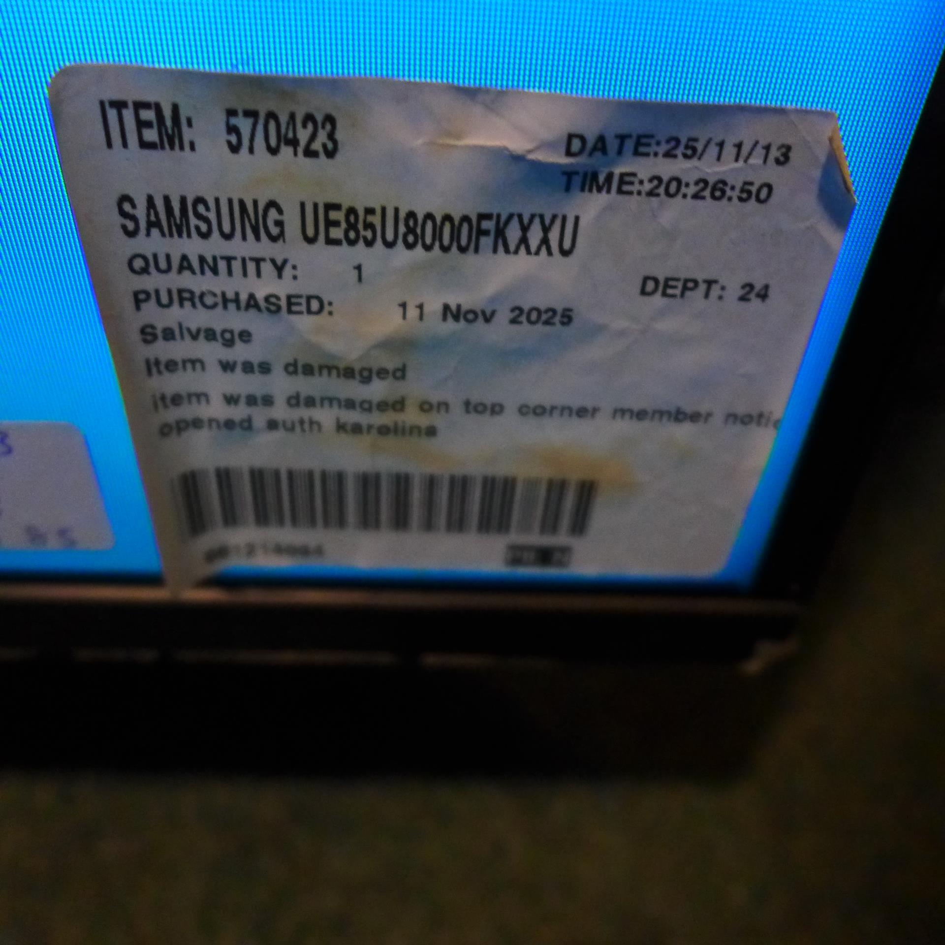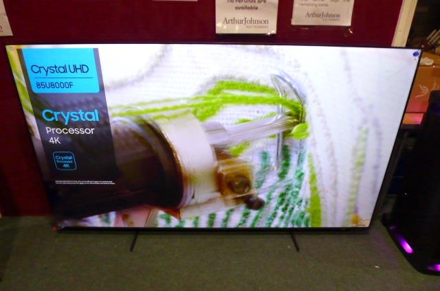 A Samsung 85" LED Crystal UHD smart television with remotes (damaged corner) - model no - UE85U8000FKXXU, original RRP £919.99 + VAT (377-7) *This lot is subject to VAT