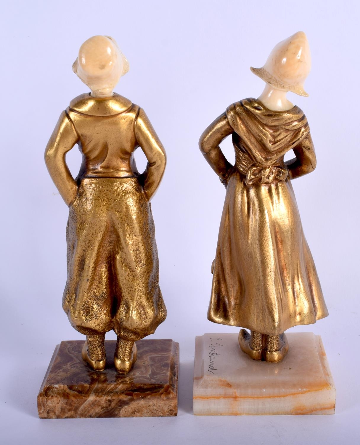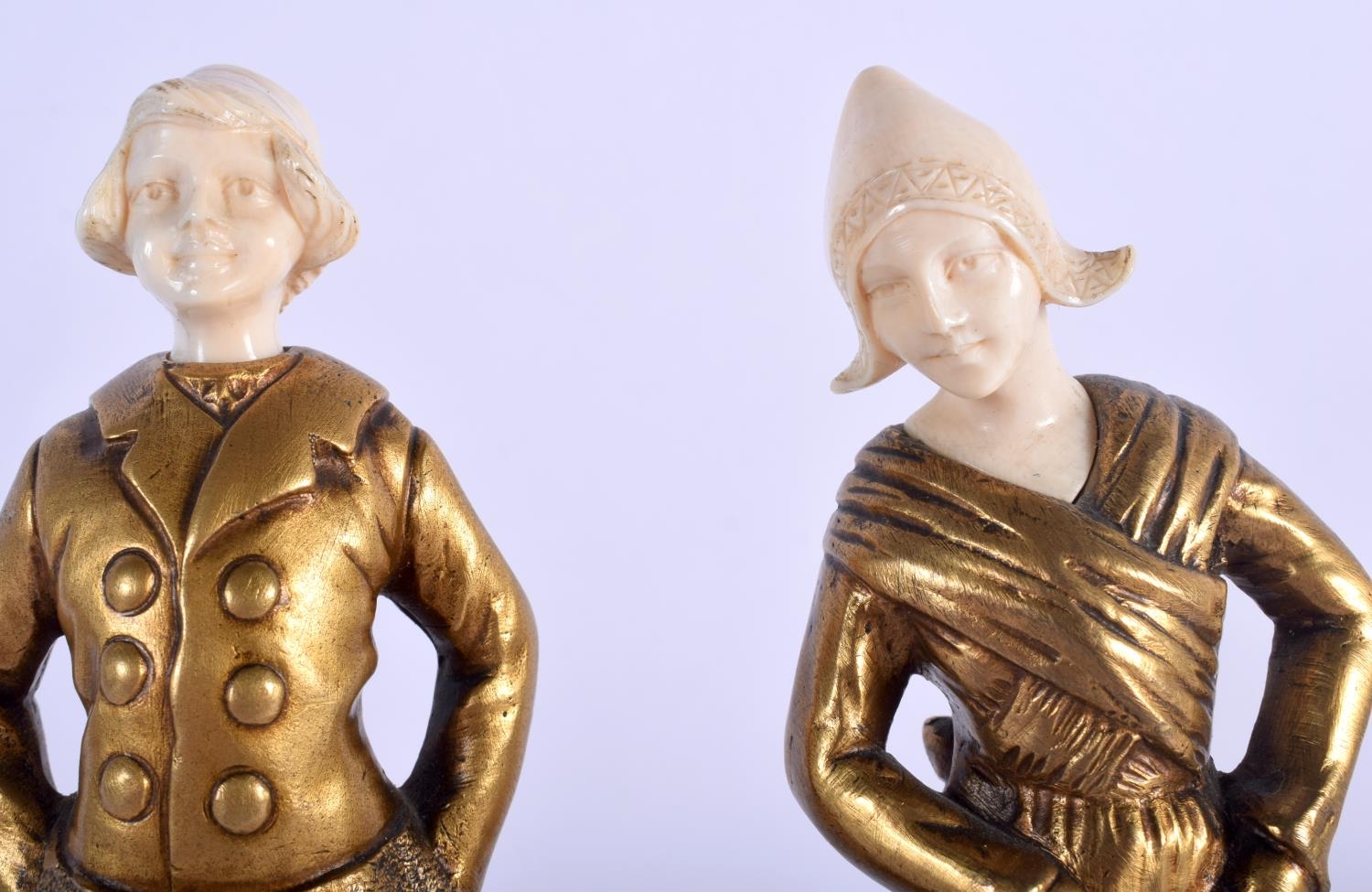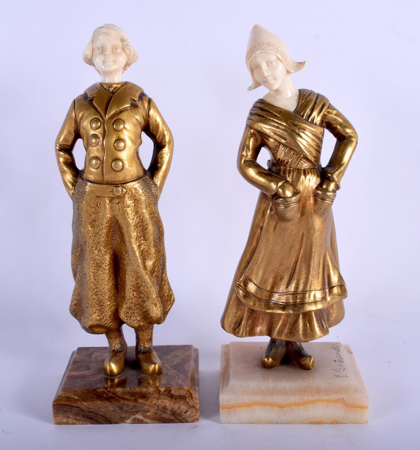 French School (C1920) Bronze and Ivory, Pair of Figures. 17 cm high.