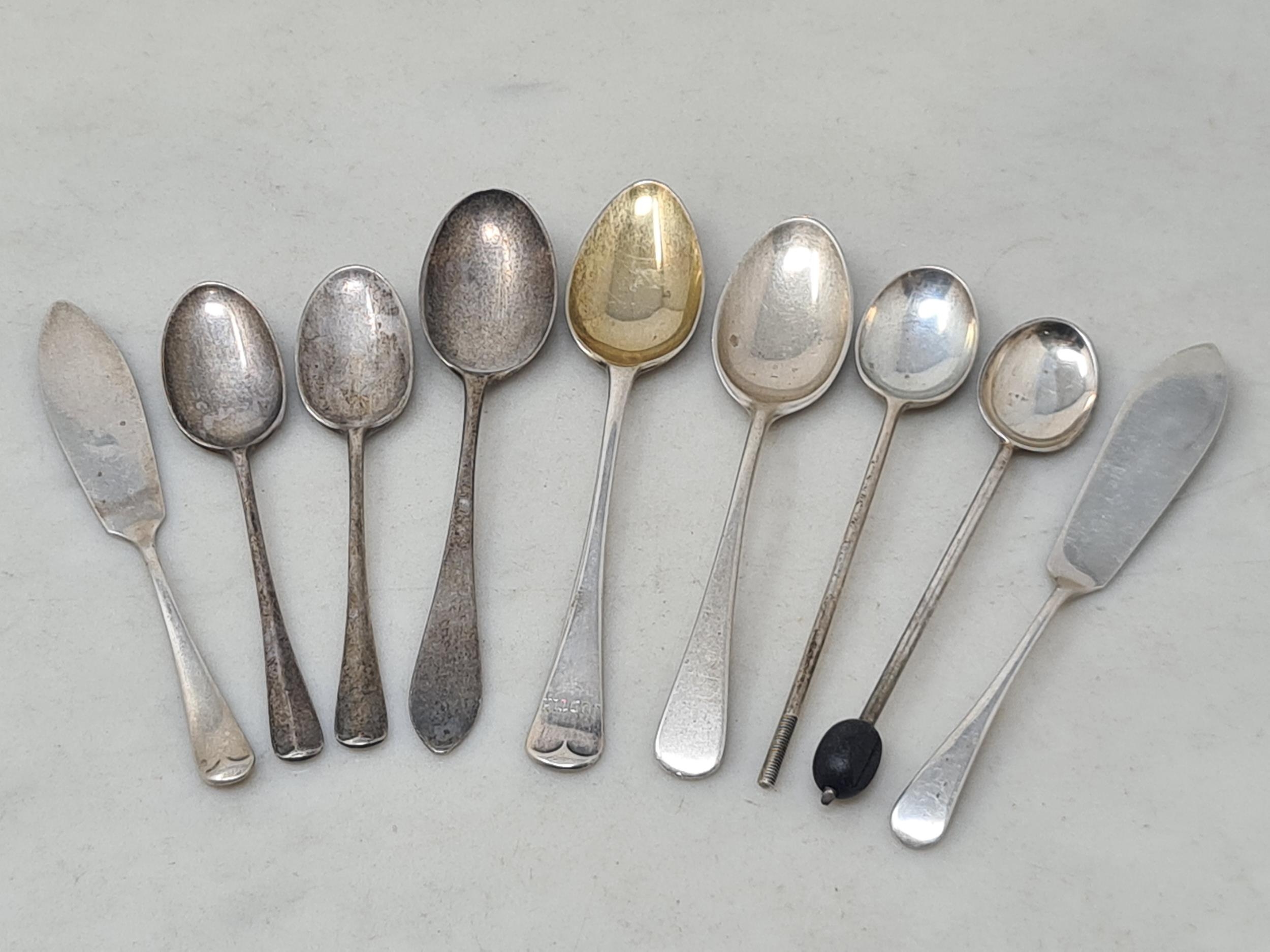 Seven various Tea and Coffee Spoons and two Butter Knives, 88gms