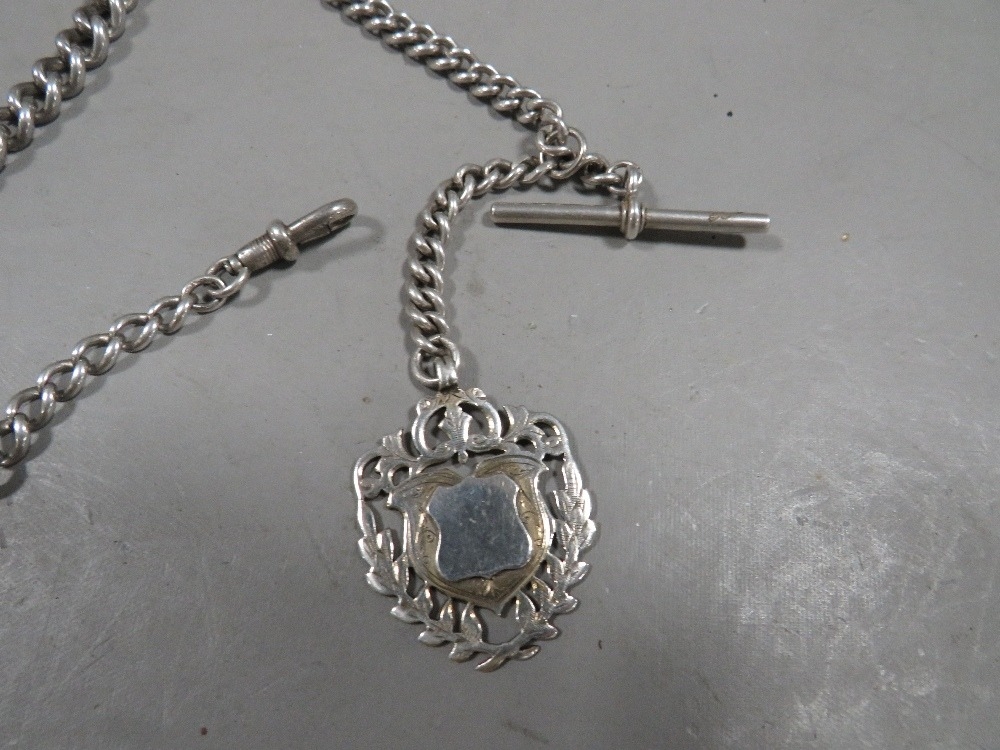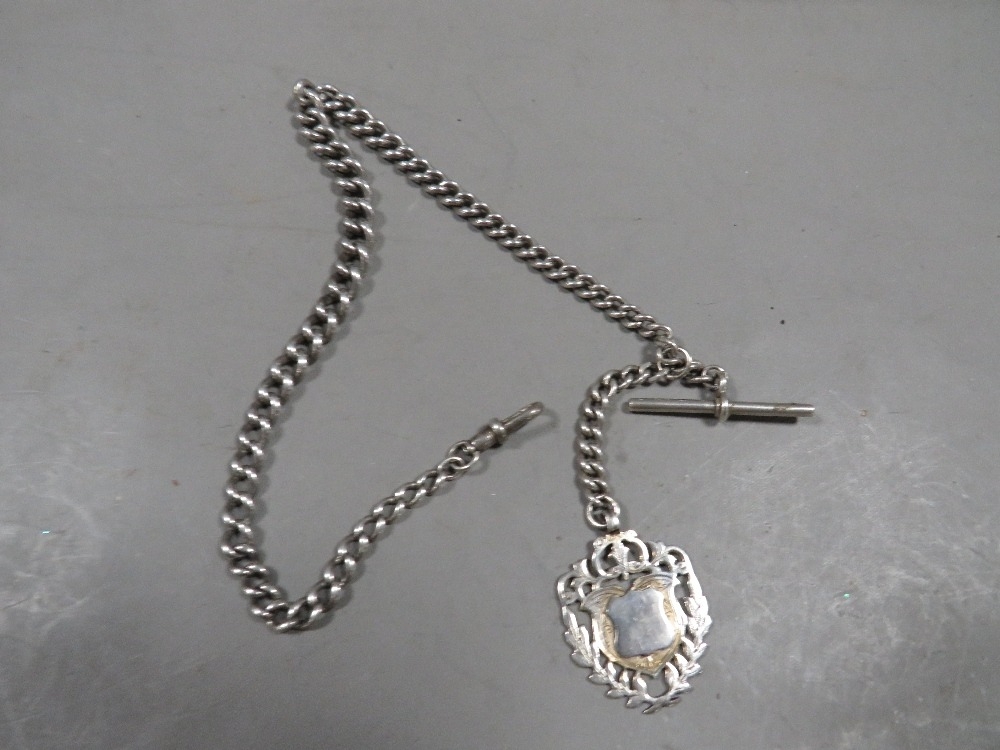 A mens antique silver pocket watch albert chain