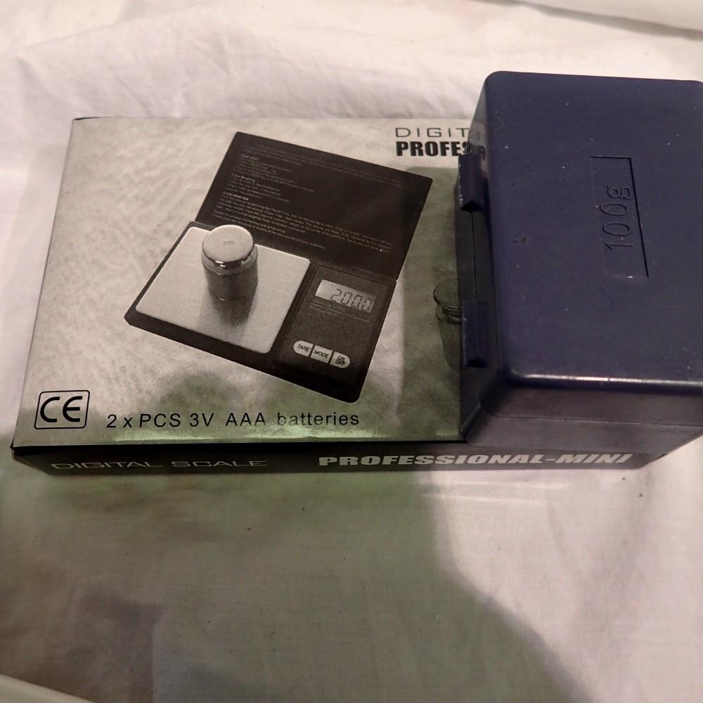 Pocket scales, factory sealed with a further box of calibration weights. UK P&P Group 1 (£16+VAT for the first lot and £2+VAT for subsequent lots)