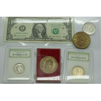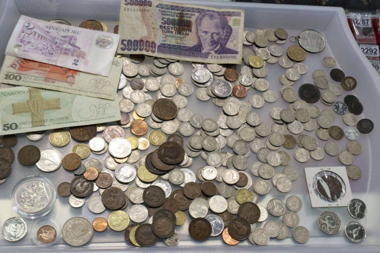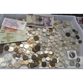 Mixed UK and world coins, including 1931 high grade farthing, 1951 5 shillings, UK territories, IOM, with some banknotes. UK P&P Group 1 (£16+VAT for the first lot and £2+VAT for subsequent lots)