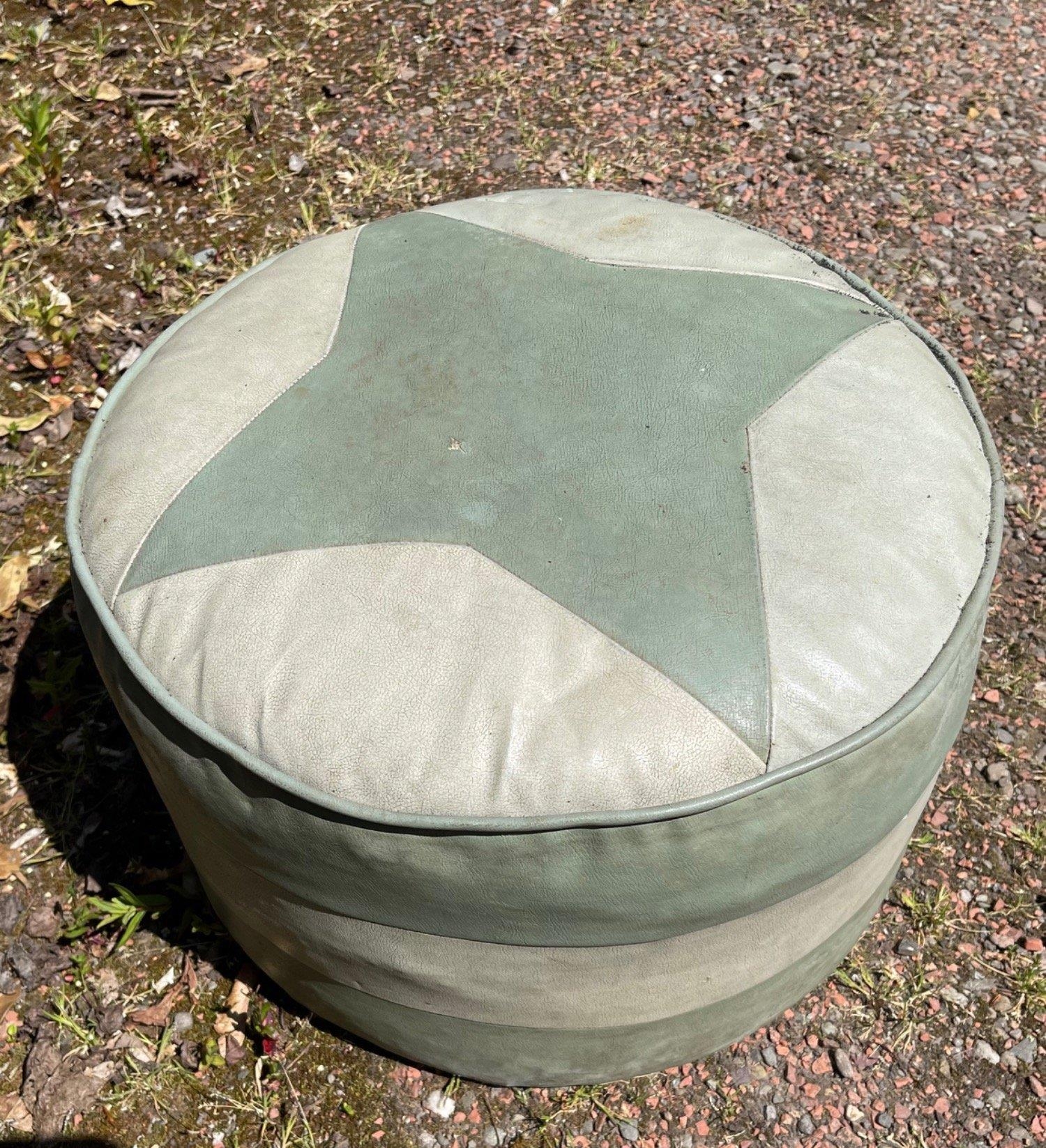 A green leather style c1950's pouffe with a star shaped design
