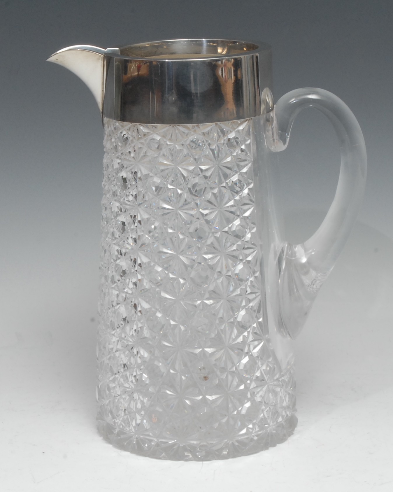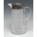 A substantial Victorian silver mounted hobnail-cut lemonade jug, scroll handle, star-cut base, 25cm high, John Grinsell & Sons, Birmingham 1889